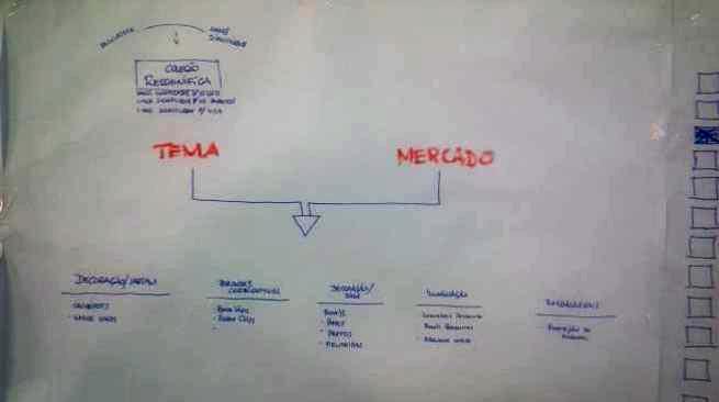 o Construção coletiva do tema baseado nas informações de mercado;