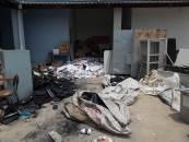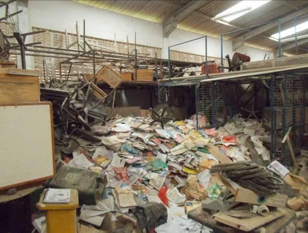 Com o acúmulo de material recebido (e sem critério, pois recebe todo material) está funcionando hoje como um estoque (de lixo) de material para descarte. Além disso, as colmeias (com abelhas) no fundo trarão um problema de segurança e manuseio (das peças e do espaço).
