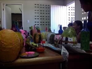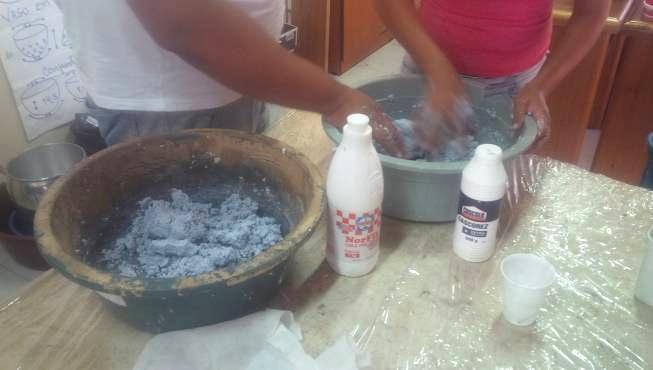 Após discussão coletiva, foi definido que a matéria prima para etapas posteriores sera o papel, em técnica da papietagem sobre moldes.