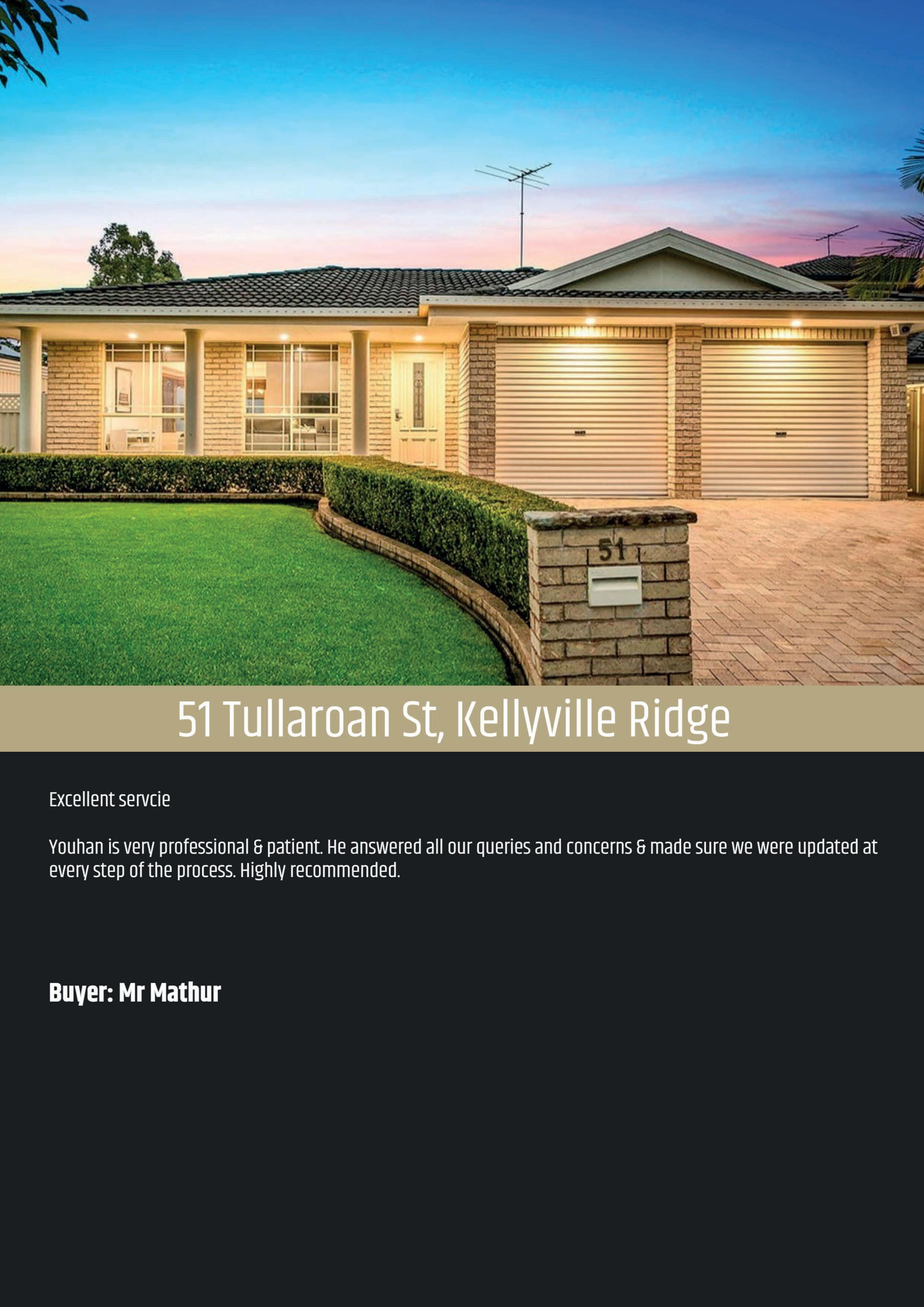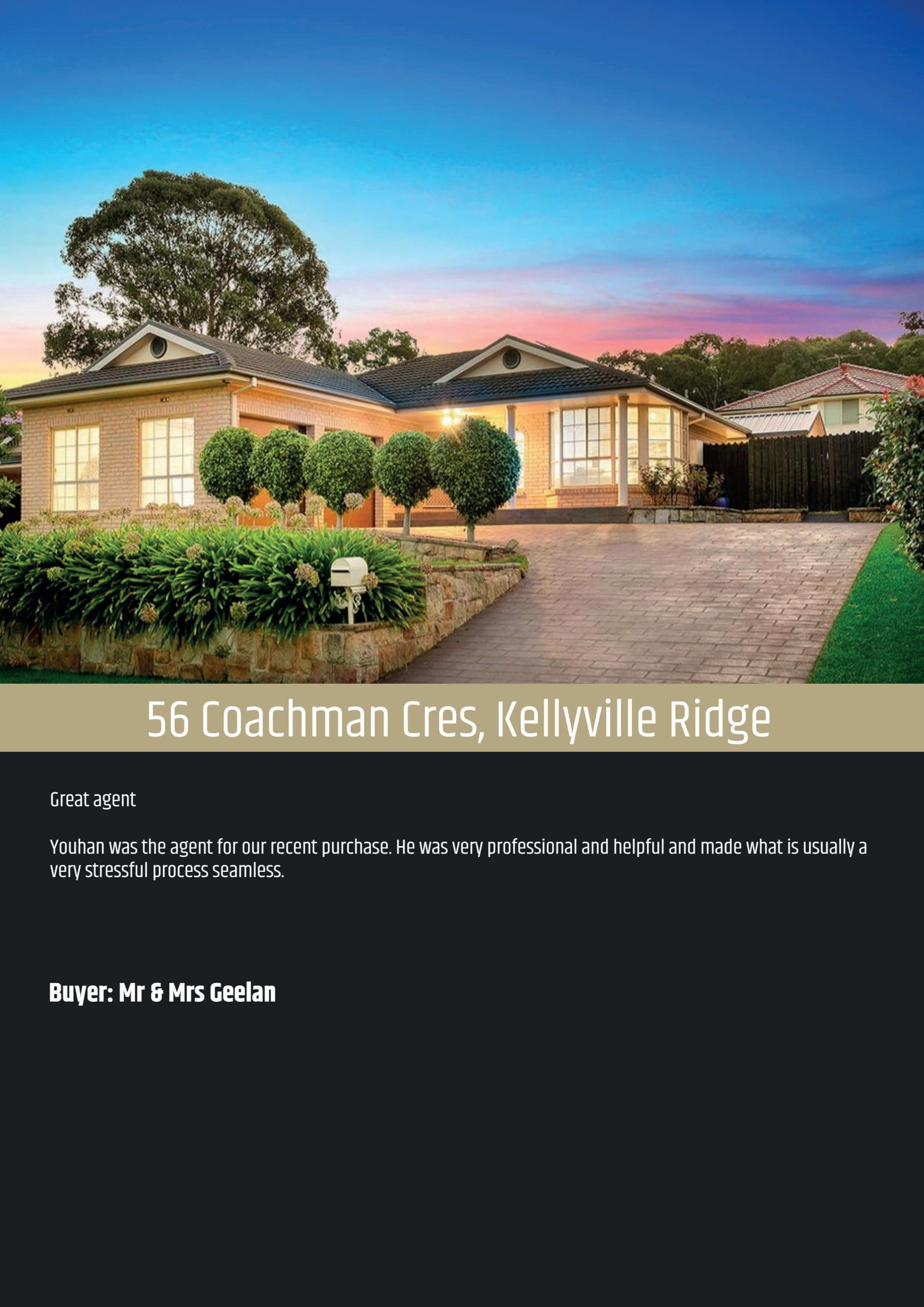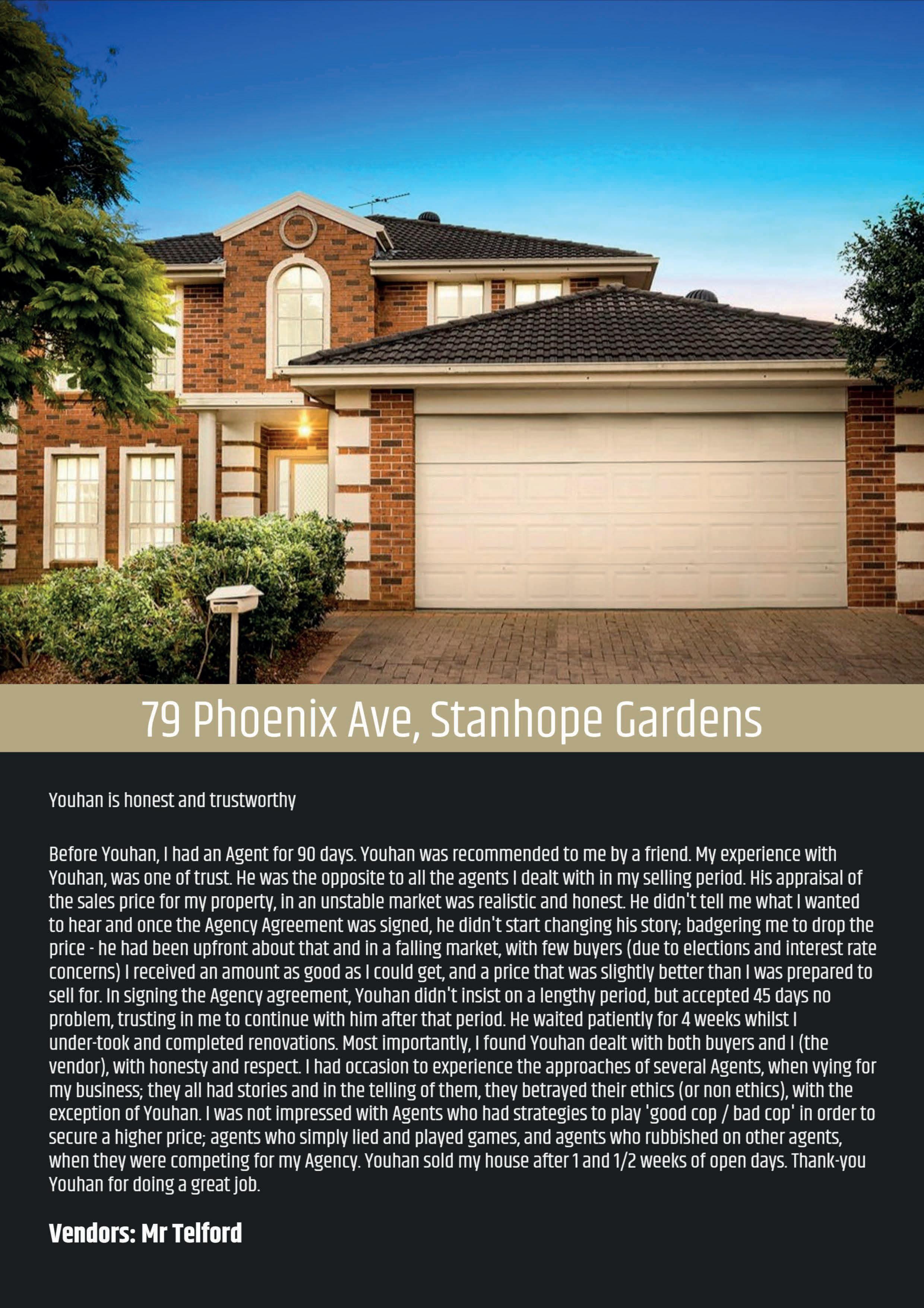 Before Youhan, I had an Agent for 90 days. Youhan was recommended to me by a friend. My experience of Youhan, was one of Trust. He was the opposite to all the agents I dealt with in my selling period. His appraisal of the sales price for my property, in an unstable market, was realistic and honest. He didn't tell me what I wanted to hear, and then once the Agency Agreement was signed, he didn't start changing his story; badgering me to drop the price - he had been upfront about that, and in a falling market, with few buyers (due to elections and interest rate concerns), I received an amount as good as I could get, and slightly better than I was prepared to sell for. In signing the Agency agreement, Youhan didn't insist on a lengthy period, but accepted 45 da ys- no problem, trusting in me to continue with him after that period. He waited patiently for 4 weeks whilst I under-took and completed renovations. Most importantly, I found Youhan dealt with both buyers and myself as vendor, with honesty and respect. I had occasion to experience the approaches of several Agents, when vying for my business; they all had stories and in the telling of them, they betrayed their ethics (or non ethics), with the exception of Youhan. I was not impressed with Agents who had strategies to play 'good cop / bad cop' in order to secure a higher price; agents who simply lied and played games, and agents who rubbished on other agents, when they were competing for my Agency. Youhan sold my house after 1 and 1/2 weeks of open days. Thank-you Youhan for doing a great job.