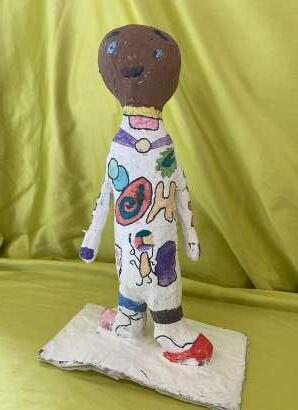 –Benito, Samuel, Xinyu i Moha– que parla de la diversitat de colors de la pell i del racisme associat a aquesta diversitat. L’obra ha estat creada a partir de retalls de teles que han tenyit amb tints naturals i temperes per recrear diferents tonalitats de pell, i que han cosit per fer-ne una bandera gegant.