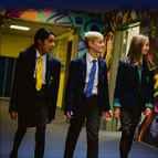 JasraajSandhar,Elliot Woodalland Eve Beards,all aged16, celebratetheir GCSE resultsatWolverhampton GrammarSchool