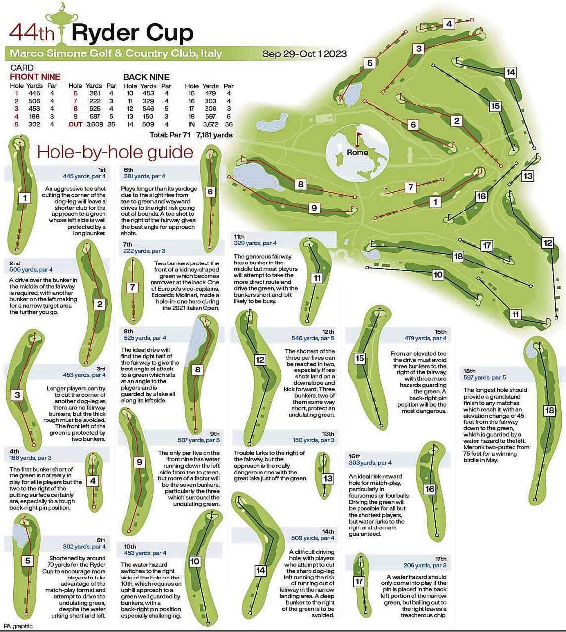 EUROPE have revengeverymuchintheir sights after their humbling19-9 defeatatWhistlingStraits twoyearsago,but howisthe 43rdRyder Cupat Rome’s MarcoSimone Golf and CountryClub likely to panout