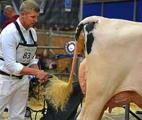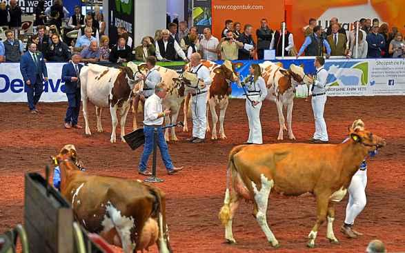 Theshowringwas kept busy from 9am on theday until theexciting finale of the Ayrshireand Holstein championshipsat theend of theday
