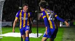 JordanShipley,left, celebrates hisgoalfor Town at Plymouth on Tuesday