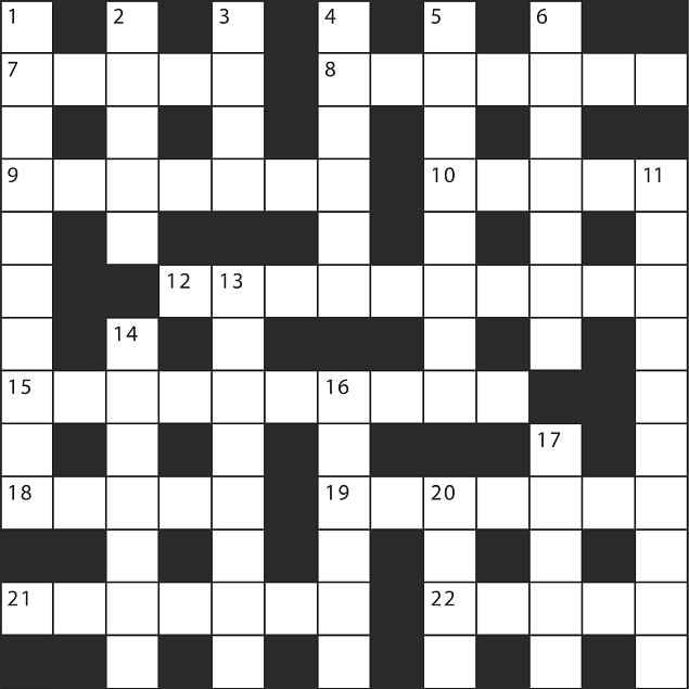 CROSSWORD: QUICK SOLUTIONS: Across: 7 Alert; 8 Emerald; 9 Tremble; 10 Track; 12 Protective; 15 In name only; 18 Found; 19 Freedom; 21 Assuage; 22 Shorn. Down: 1 Past belief; 2 Refer; 3 Stub; 4 Defect; 5 Vertical; 6 Satanic; 11 Keep in mind; 13 Remedial; 14 Anguish; 16 Offset; 17 Idiot; 20 Easy