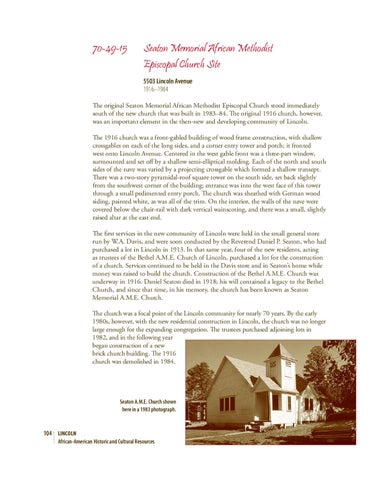Seaton Memorial African Methodist Episcopal Church Site 5503 Lincoln Avenue 1916–1984