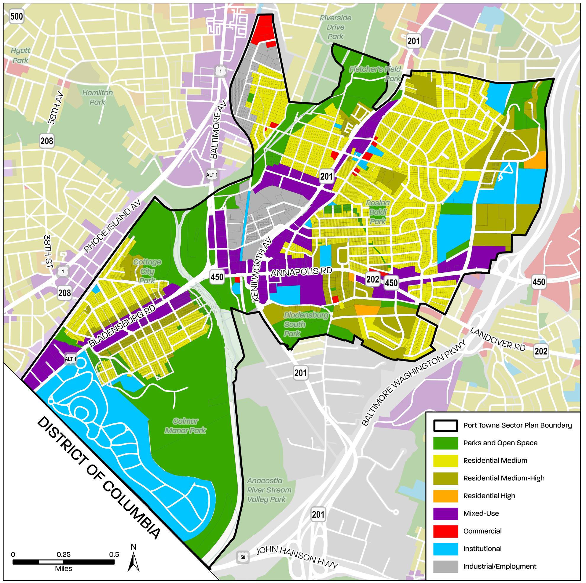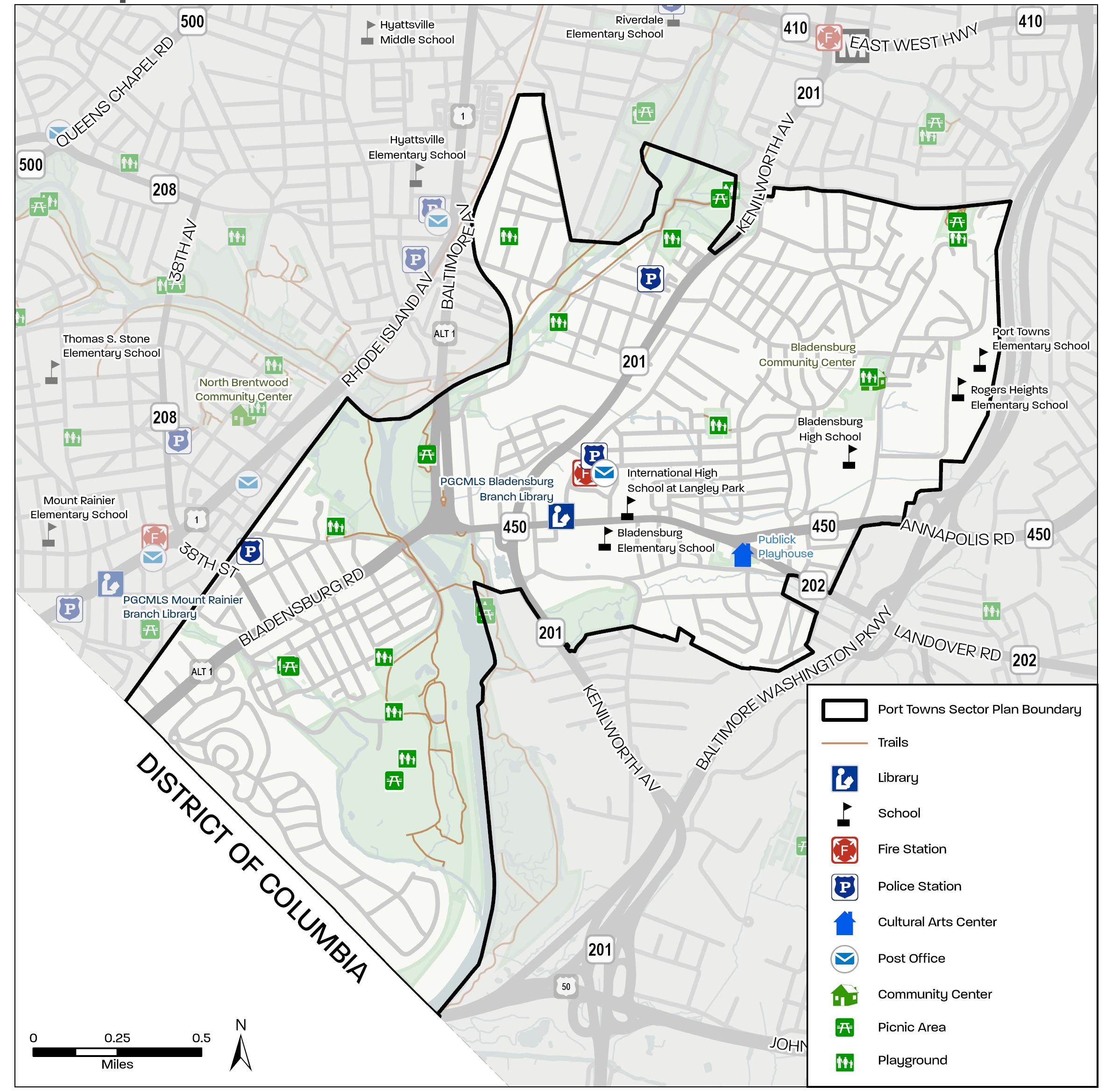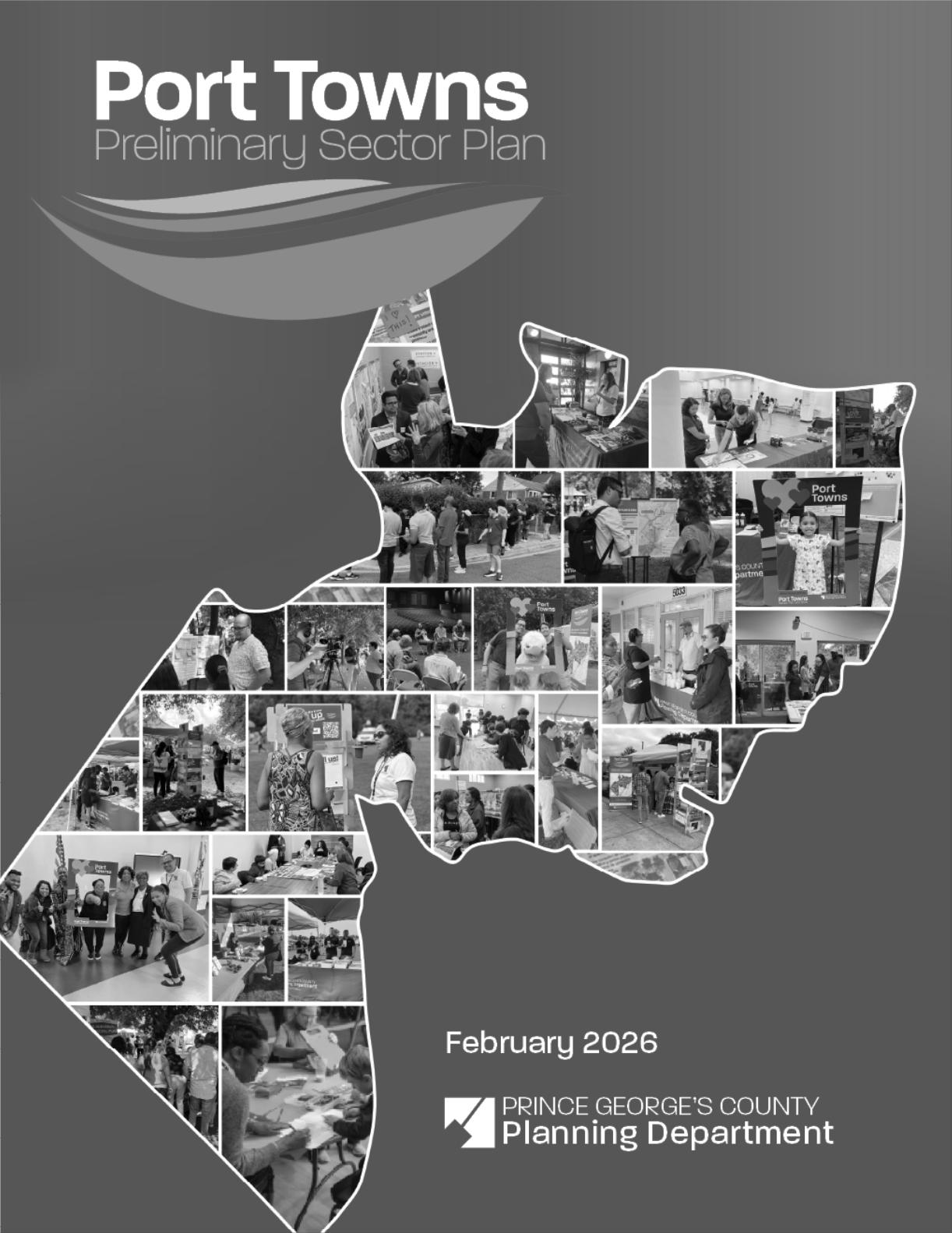 The Prince George’s County Planning Board of The Maryland-National Capital Park and Planning Commission is pleased to make available the 2026 Preliminary Port Towns Sector Plan and its accompanying proposed concurrent Sectional Map Amendment. This plan recommends fostering a vibrant, inclusive, and resilient community by focusing development in mixed-use hubs, enhancing transportation and green space access, and honoring the community’s rich cultural and natural heritage. This is a comprehensive sector plan that contains recommendations for Land Use; Economic Prosperity; Transportation and Mobility; Natural Environment; Housing and Neighborhoods; Community Heritage, Culture, and Design; Healthy Communities; Public Facilities; and Placemaking specific to the Port Towns Sector Plan area, and a matrix that identifies the timeframe and responsible entities for implementation. We invite you to carefully review this preliminary sector plan and encourage you to attend the joint public hearing anticipated in Spring 2026 to present your views to the Prince George’s County Planning Board and Prince George’s County Council, sitting as the District Council. You are also encouraged to submit testimony in writing to the Clerk of the County Council. The Planning Board will review all comments presented at the joint public hearing in our deliberations prior to the adoption of the plan and transmittal to the County Council for action. We look forward to hearing from you soon!