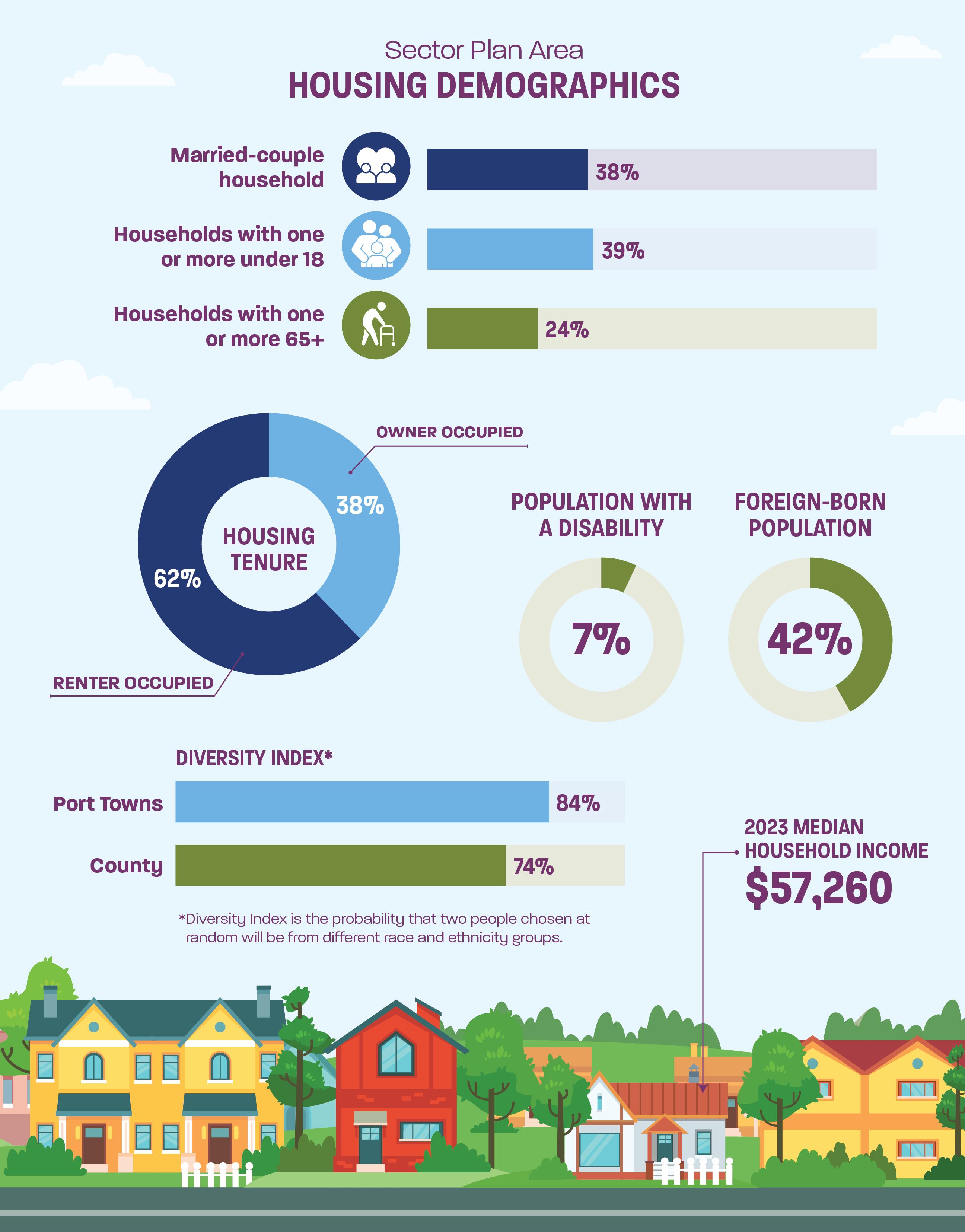 This sector plan was developed over 24 months with significant public input, including meetings and feedback from residents, property owners, business owners, public agencies, and stakeholders. The result is a long-term community vision for the Port Towns area along with goals, policies, and strategies to implement this vision.