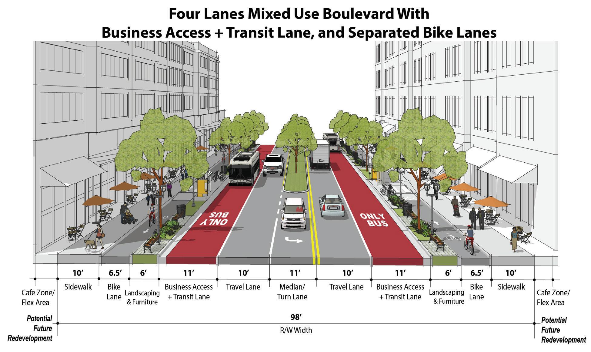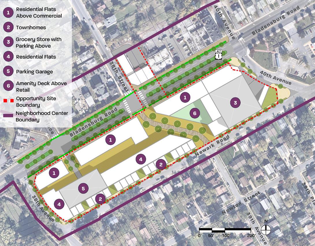 The third section starts with the defined vision and a high-level overview of key policies and strategies. This is followed by conceptual designs showcasing how some of these ideas can be interpreted within the built environment and focuses on seven opportunity sites to catalyze redevelopment.