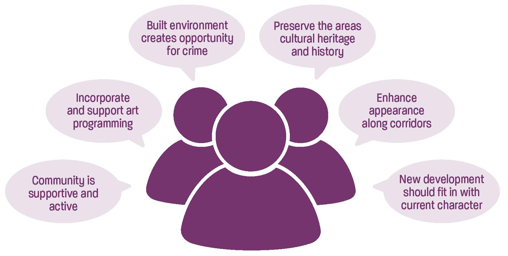 The vision statement describes, in aspirational terms, what plan area residents, workers, and other stakeholders want the area to be in 20 years and establishes the broadest context for decision-making.