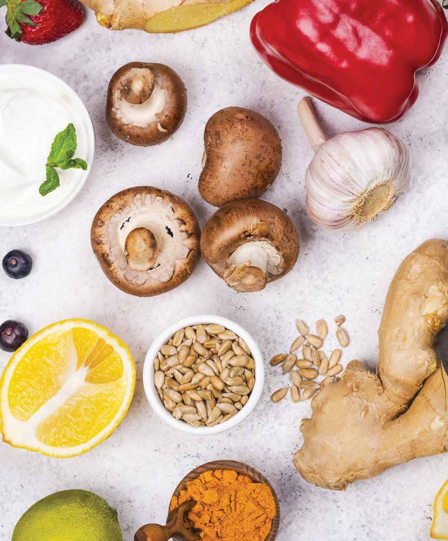 28 12 aliments incontournables contre les assauts de l’hiver 30 Palmarès des aliments acides et alcalins 32 Des aliments qui rendent heureux 34 Les meilleurs aromates culinaires pour votre santé 36 Tout sur les protéines végétales! 38 Mon coup de cœur : l’incontournable diète hypotoxique 40 Recettes