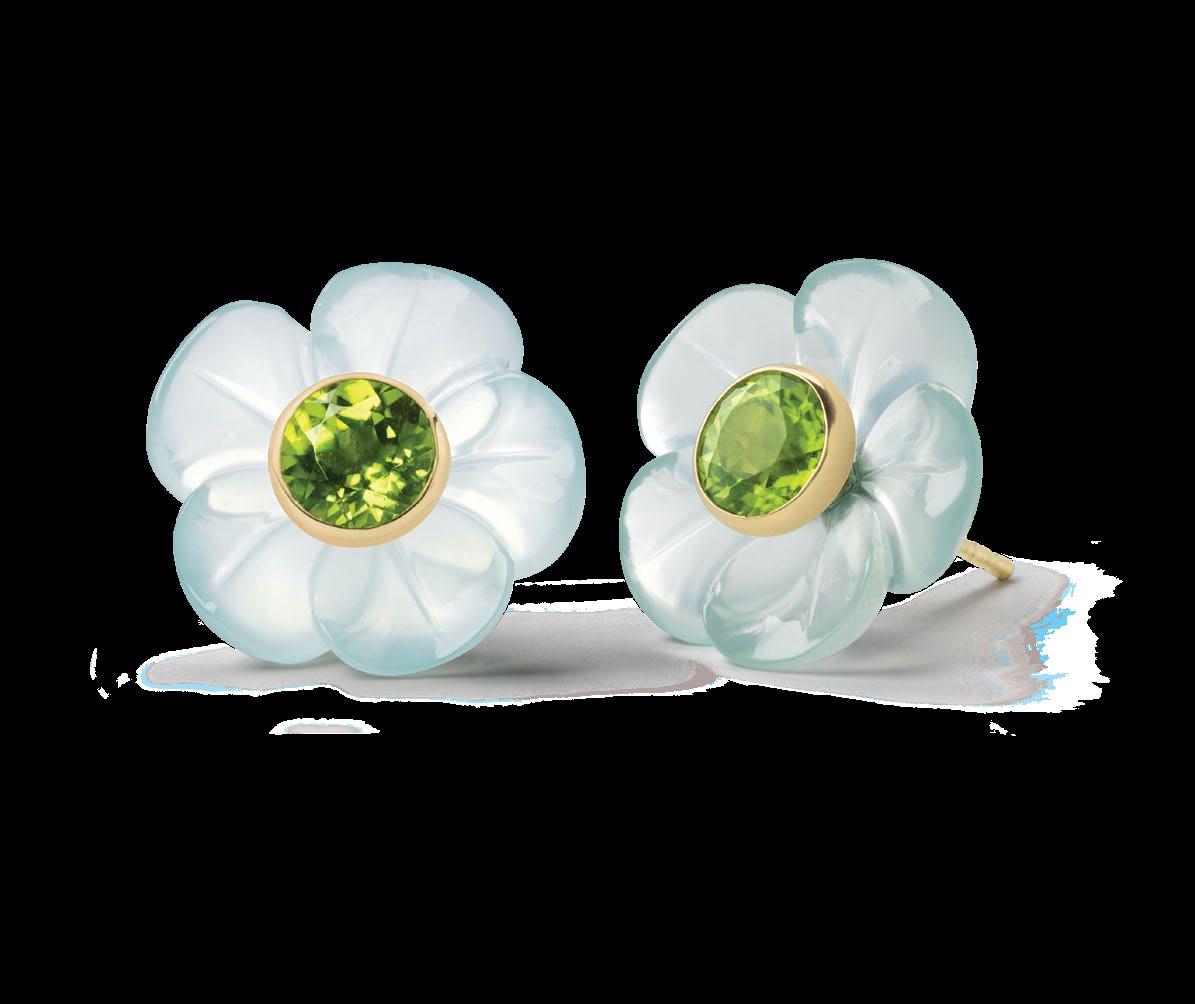 Island Flower Stud Earrings with Aquamarines and Peridots set in 14K Yellow Gold. Price: $3,098