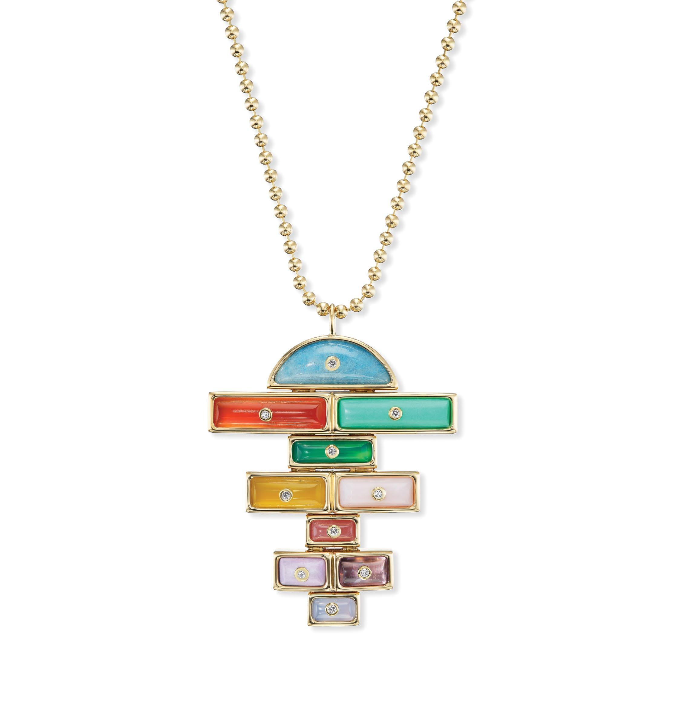 Large Caspian Necklace with Rock Crystal, Mother-of-Pearl and Diamonds set in Recycled 18K Yellow Gold (15”-16”). Price: $5,000