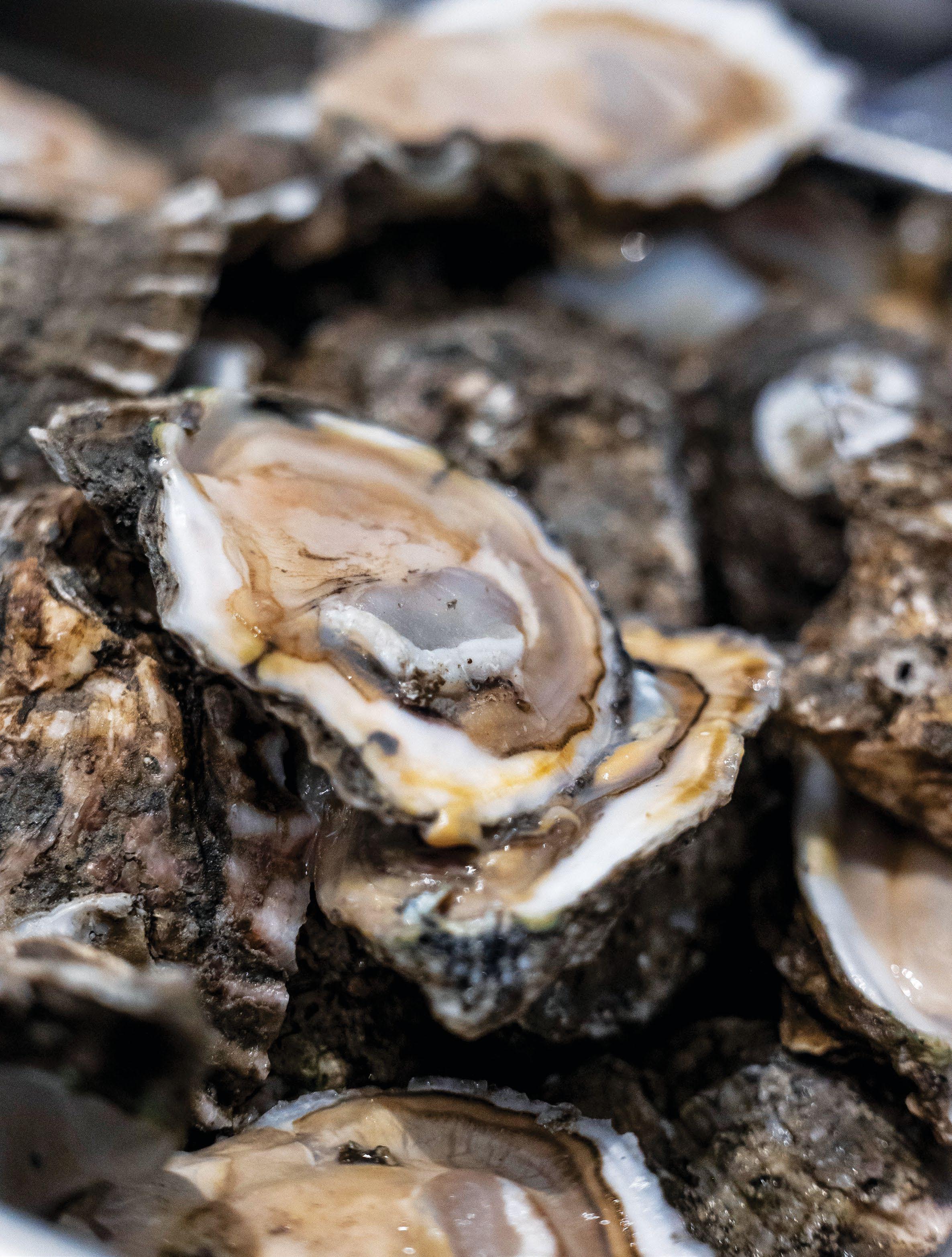 Gratinated oysters sautéed with onions, peppers, bacon, cream, and gratin