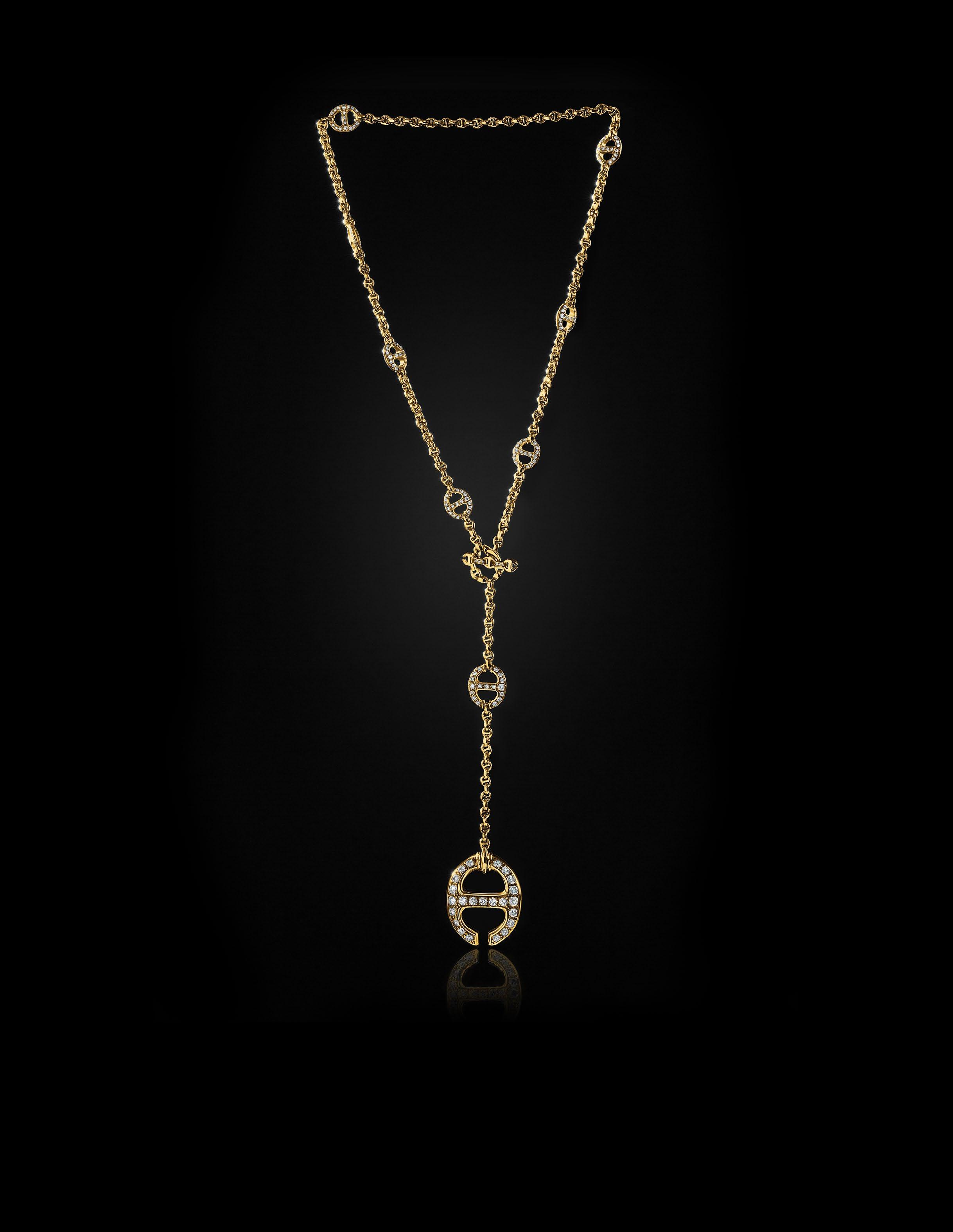 Arabesque Pendant Necklace with Diamonds set in 18K Yellow Gold.