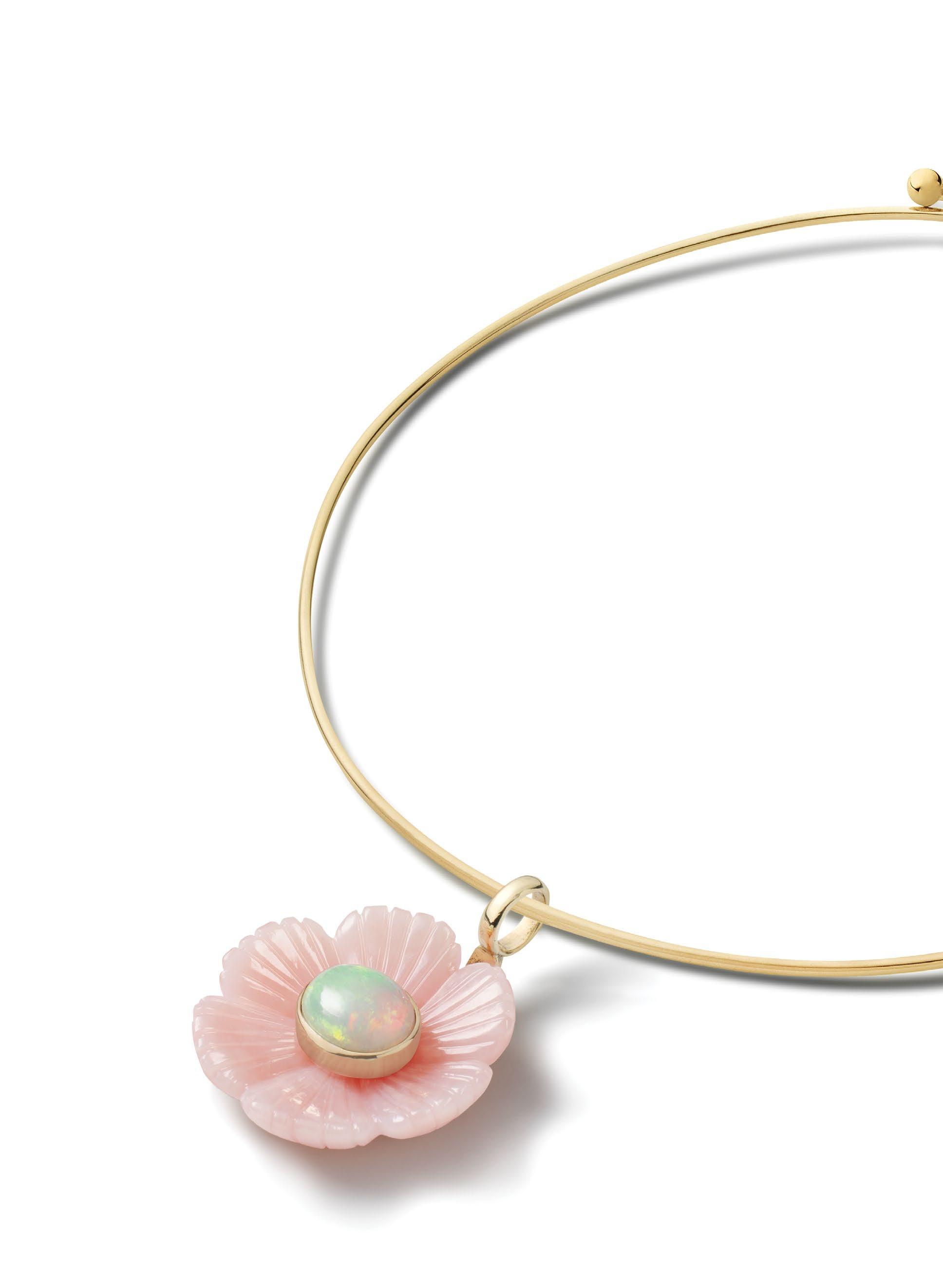 XL Paradise Flower Pendant with Pink and Ethiopian Opal set in 14K Yellow Gold. Price: $2,520