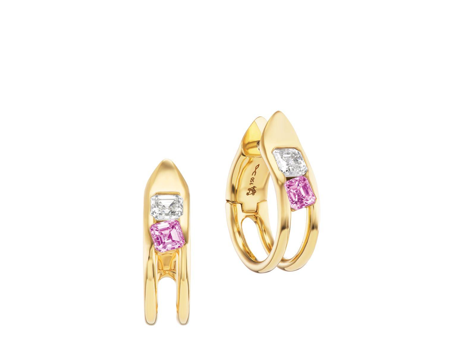 Major Impact Small Hoop Earrings with Pink Sapphires and Diamonds set in 18K Yellow Gold. Price: $24,950