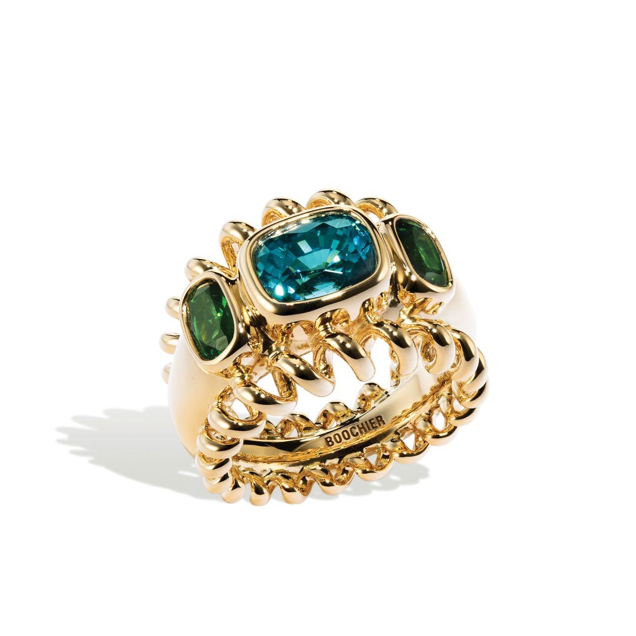 Impact Ring with Emerald and Diamond set in 18K Yellow Gold. Price: $17,950