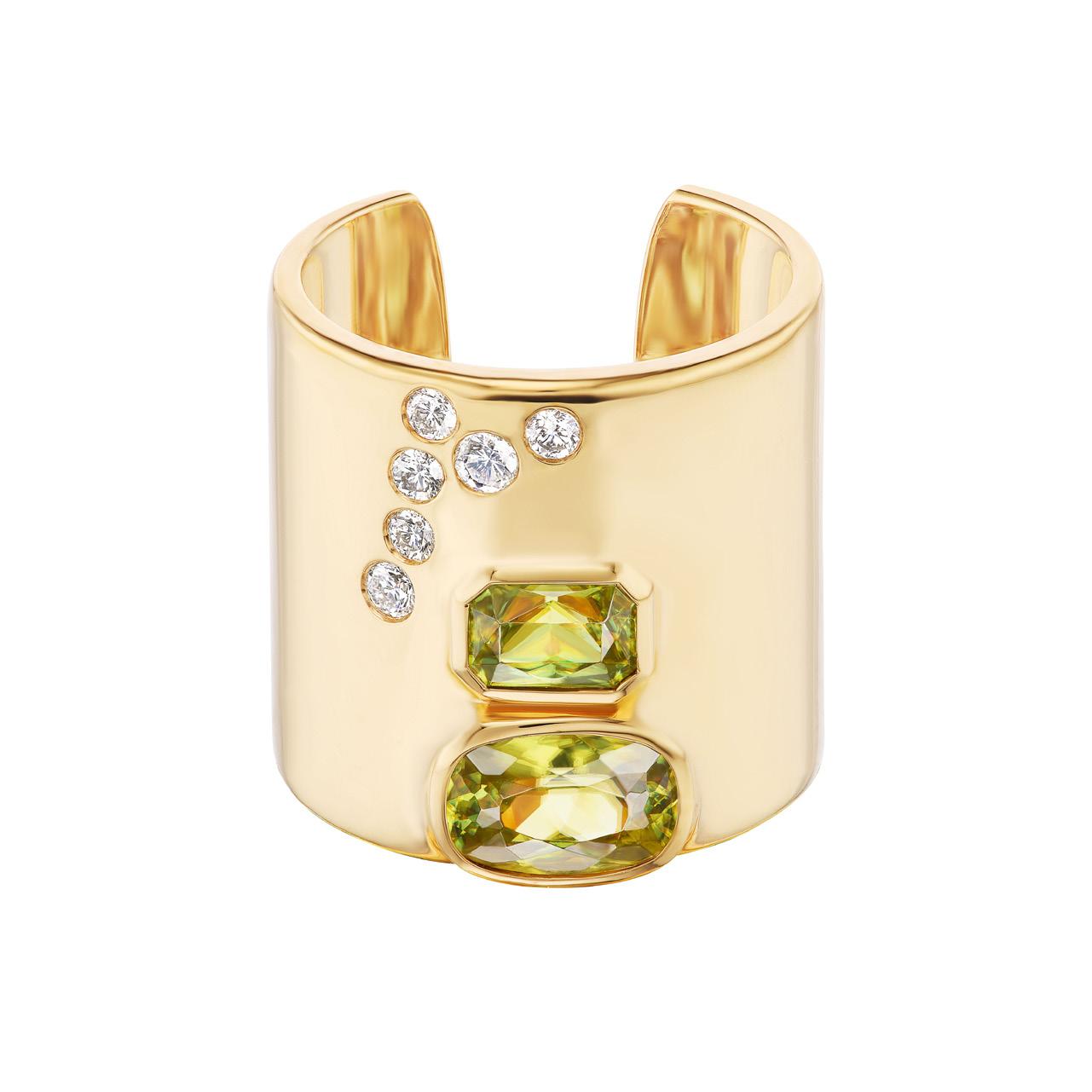One of a Kind 18K Yellow Gold with Sphene & Diamonds Cuff Ring $12,000