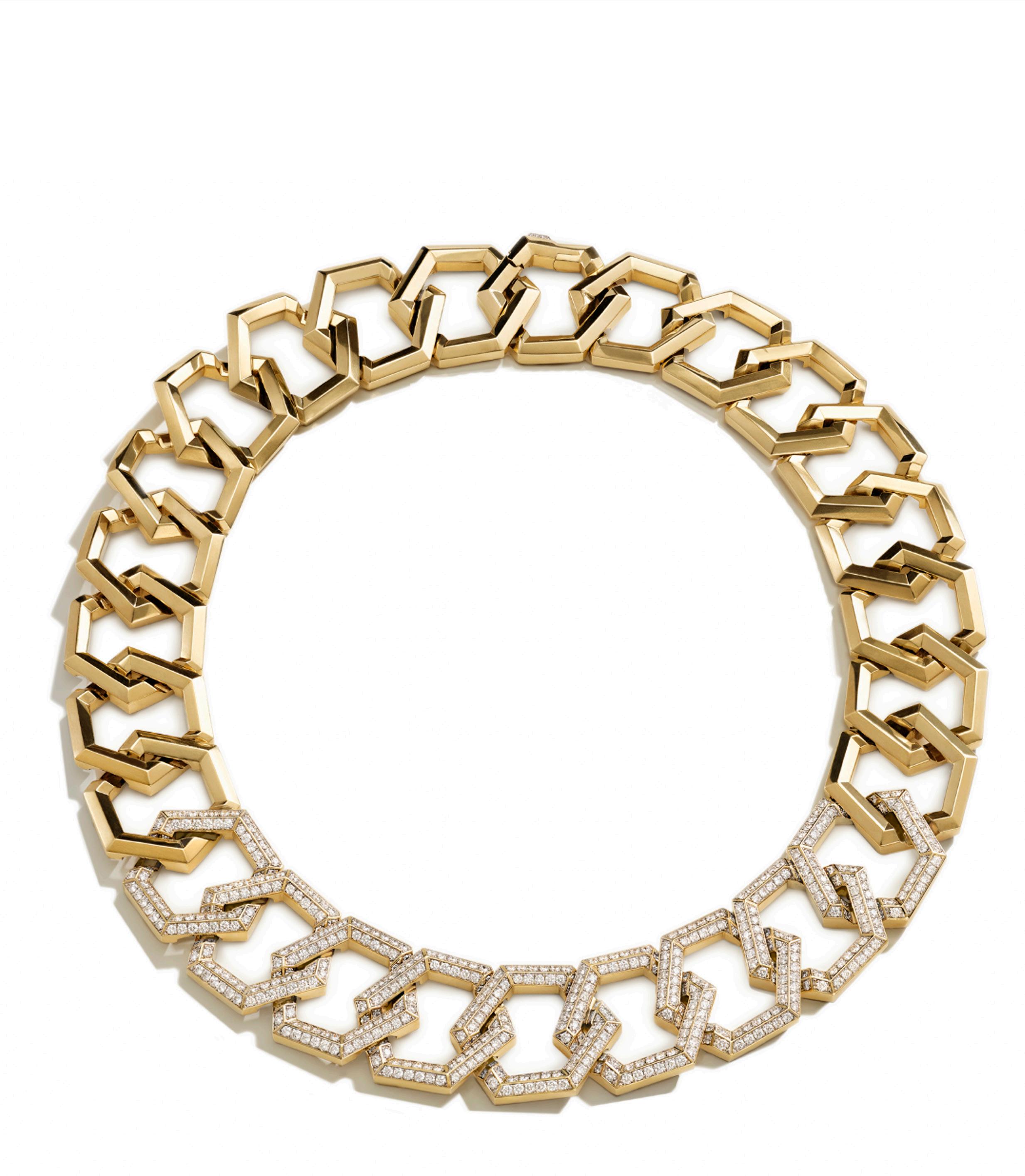 Deco Link 18K Yellow Gold with Diamonds 9.98 Carats Necklace Length 12” adjustable to 15” $44,580