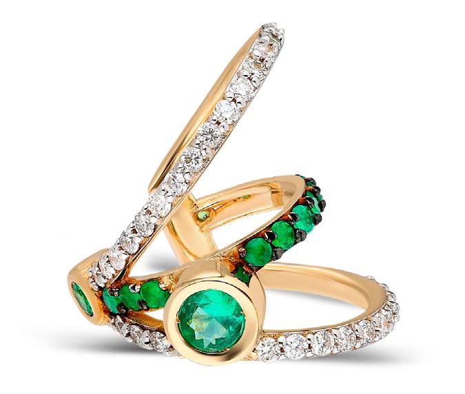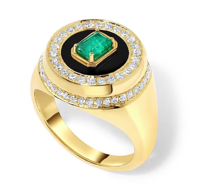 Arena 18K Yellow Gold with Muzo Emerald 2.10 Carat, Diamonds 1.20 Carats & Green Enamel Ring $15,000
