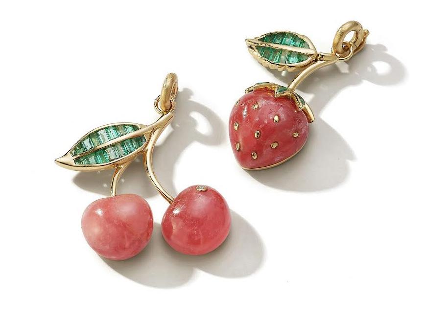 Sweet Cherry 14K Yellow Gold with Rhodochrosite, Emerald & Diamond Charm $3,995