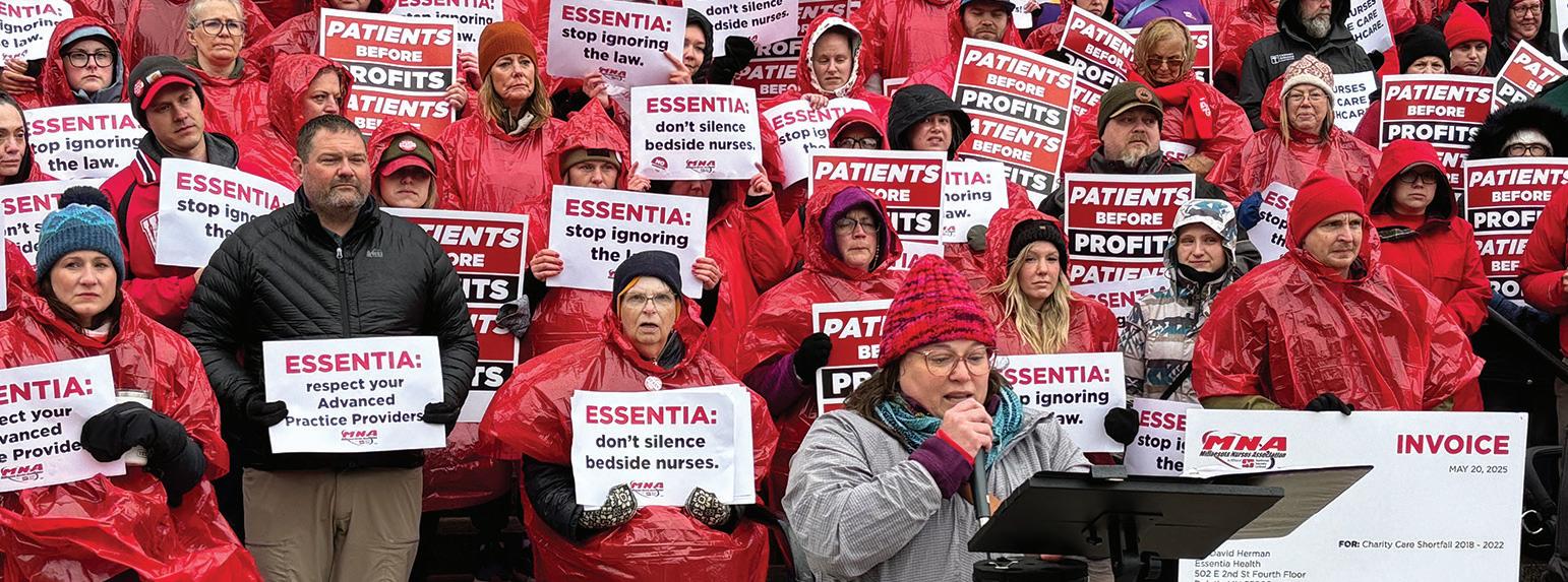 Meanwhile, Essentia continues to stonewall APPs through a stalled legal appeal to the National Labor Relations Board. MNA continues to make it clear that the appeal does not exempt Essentia from bargaining. The APPs formed a legally certified union, and ignoring their voice is unlawful and shortsighted.