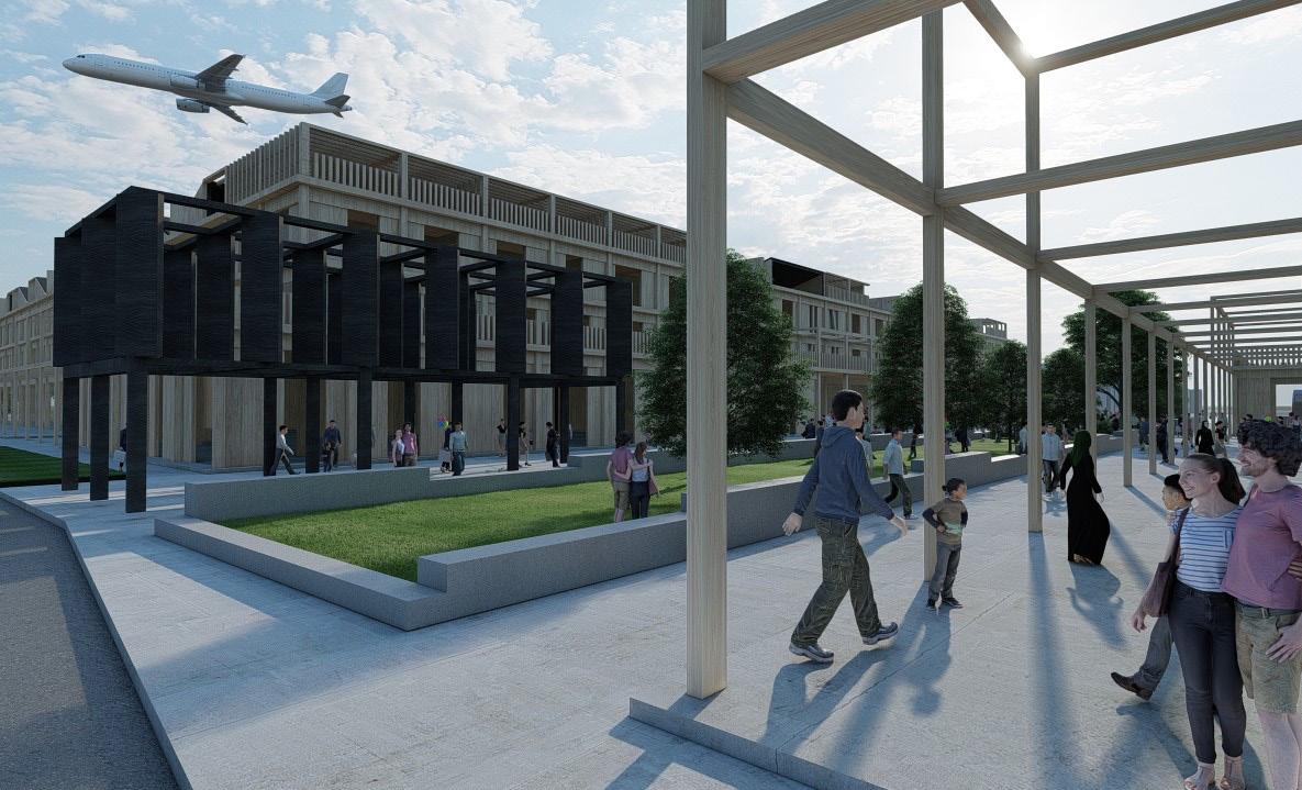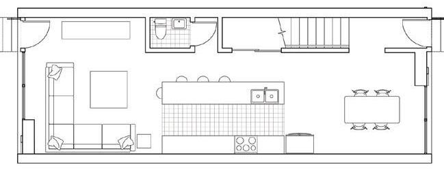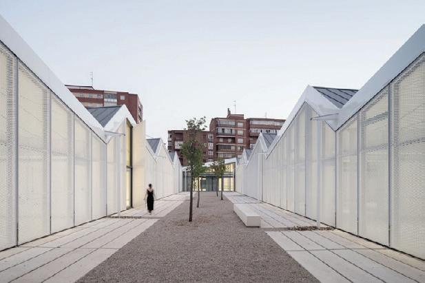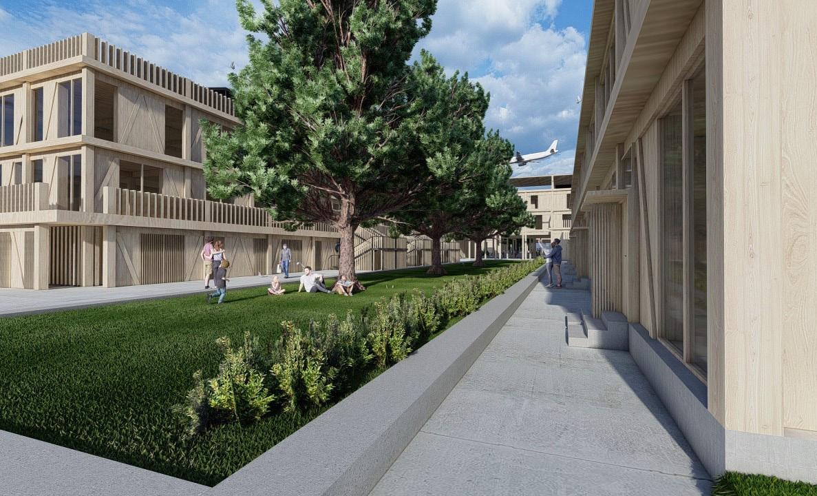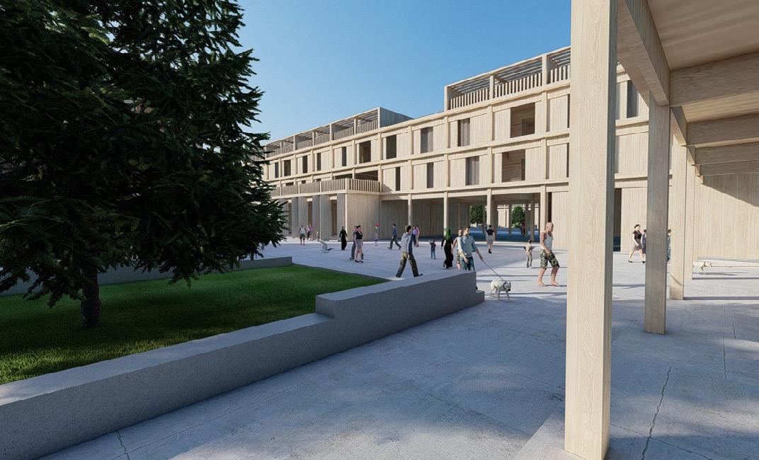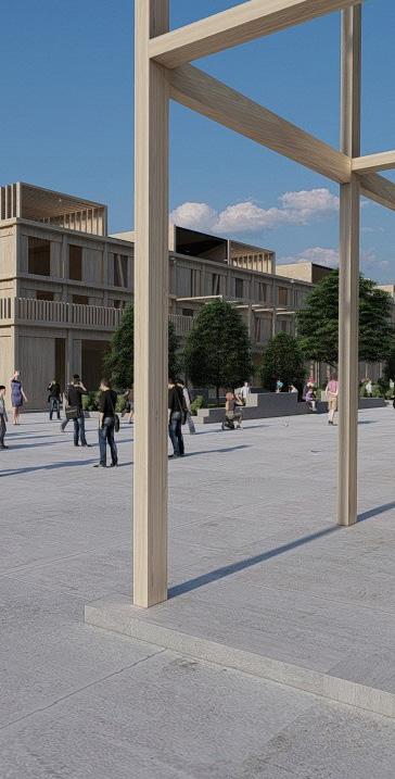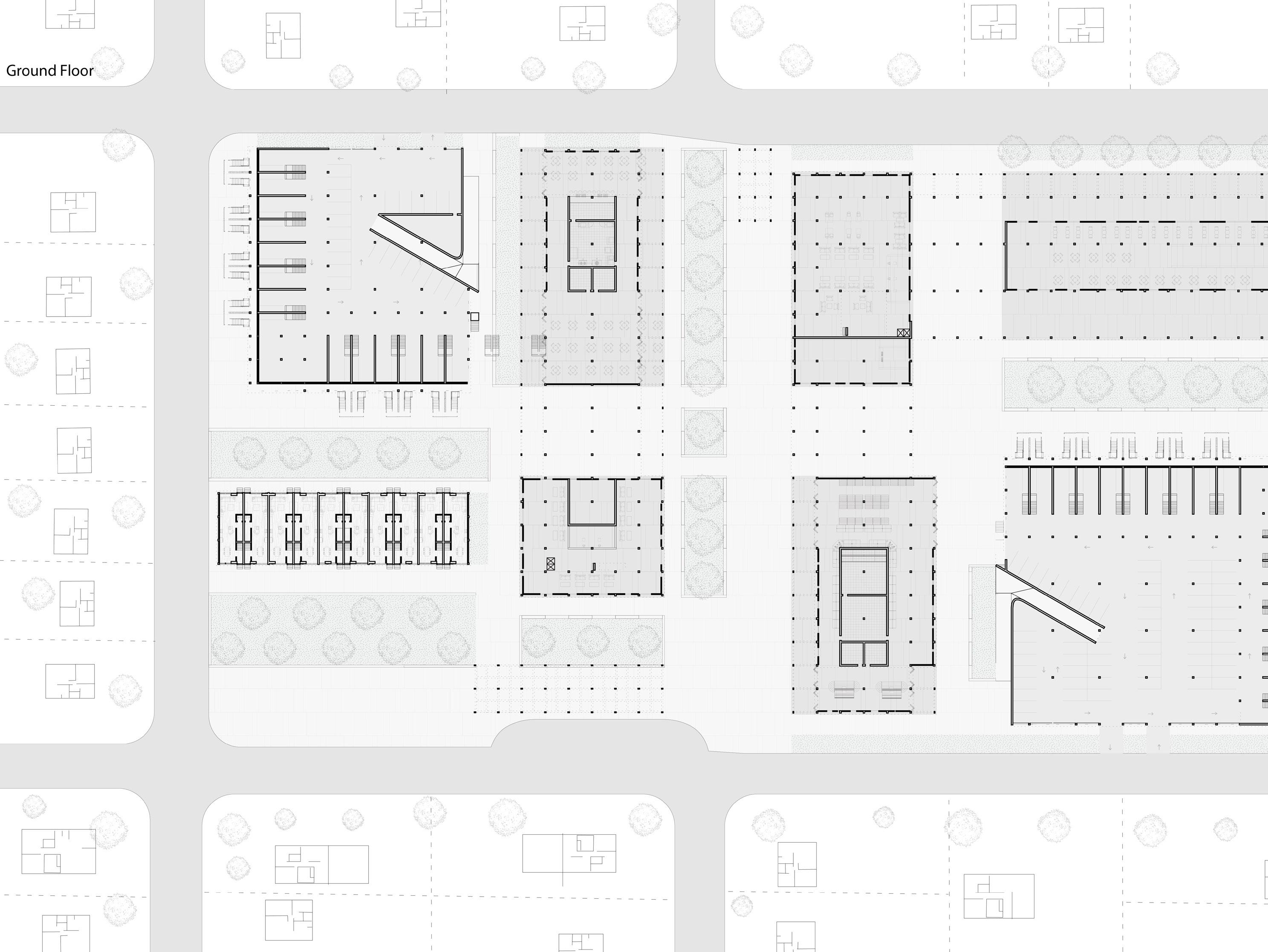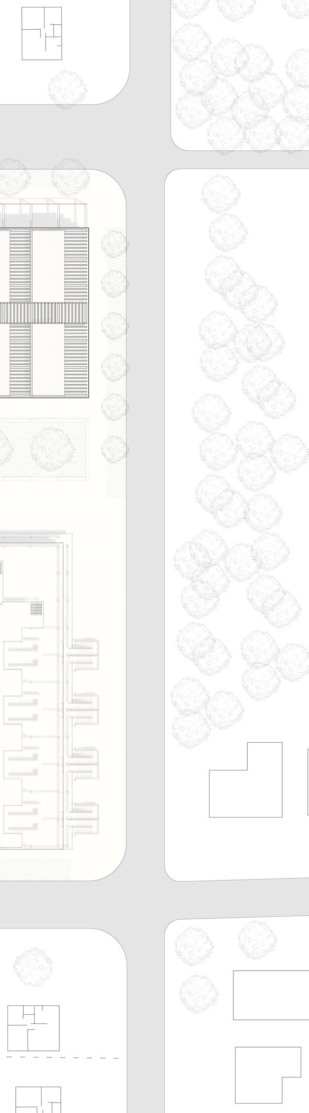 The housing development features 3 building typologies, including 2 apartment buildings with commercial spaces,in an effort to increase affordability. The buildings are designed with shared spaces creating private communal areas. The row houses feature raised masses to accommodate parking and storage, creating elevated public spaces with a private feel. The use of pre-laminated timber and scaffold structures connect the buildings to the neighborhood and enhance community spaces.