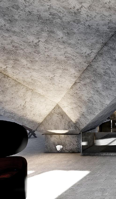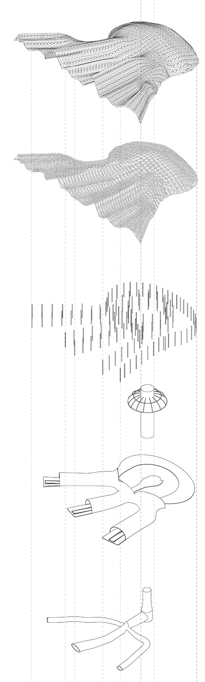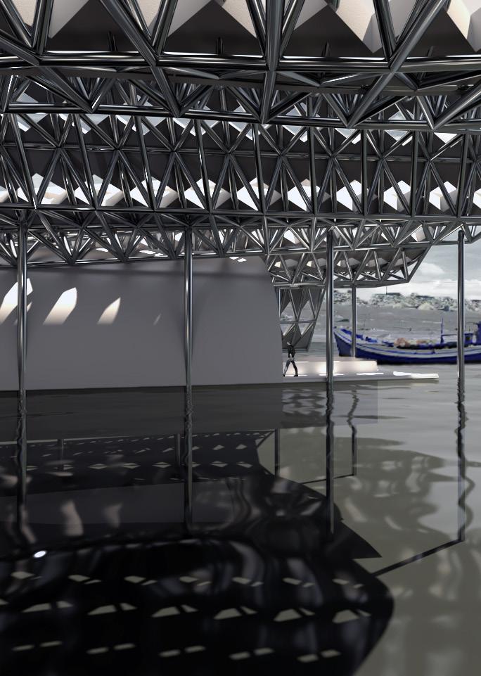 The design consists of an “archive” that protects and aids against the ecological treat we chose. The layout of the building is centered around the water collection and spraying system that cuts through the center of the project, revealing one of the processes that occur within the building. The brine is accessible for locals who would like to use the solution as a food preservation method. It is also used to supply the fish vendors at the bottom of the mass for the same reasons.
