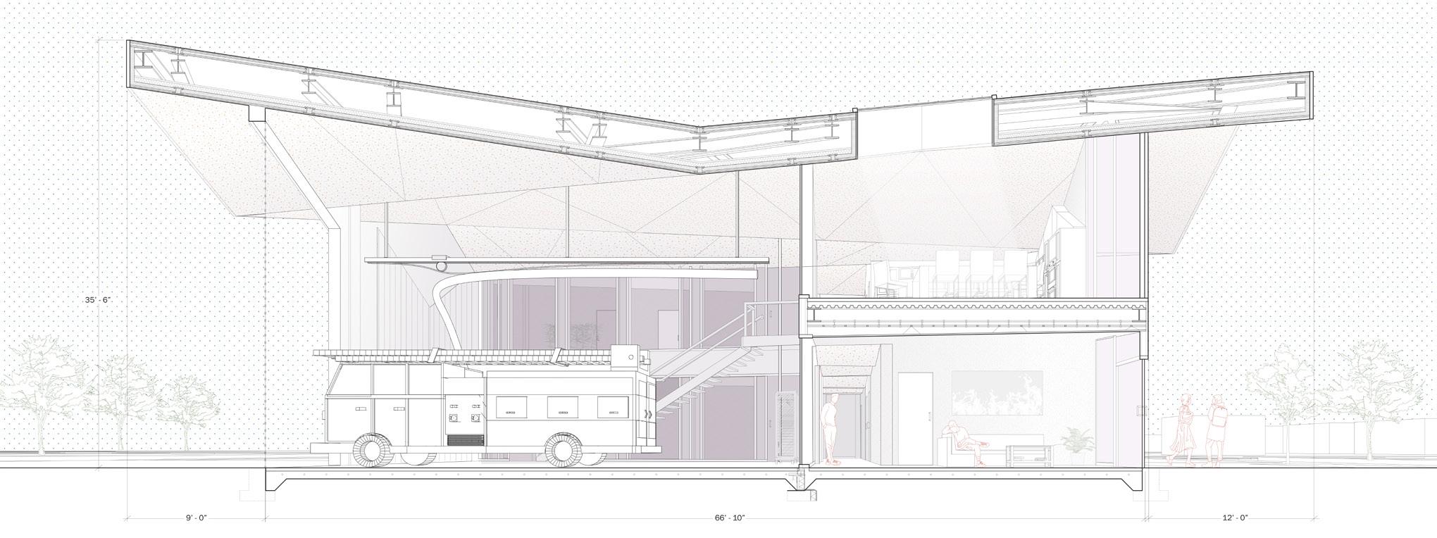 fire station is a unique building typologu which combines a diverse set of diagrams. It requires a unique composition and relationship, and because it requires a transition between mechanical and residential spaces.