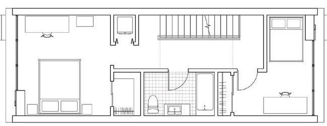 The formal makeup of this middle bay is derived from the negative space formed by the left bay.