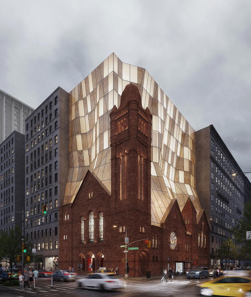 historic church in the Upper West Side of New York City. The main goal was to come up with in their home while also adding new residential units to the site. The proposal designed by DXA the existing architecture while also adding a modern twist. The design would require a financial restoration of the church and the addition of family-sized apartments to the neighborhood.