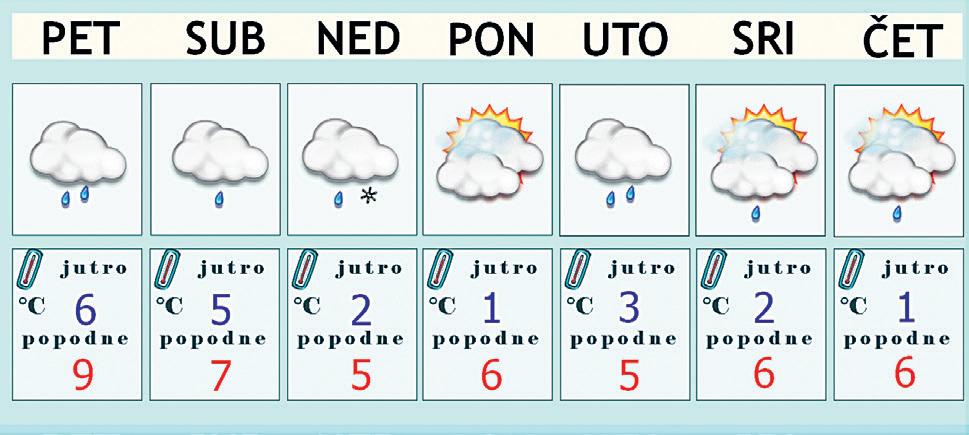 VREMENSKA PROGNOZA: Nakon malo povoljnijeg četvrtka, od petka ulazimo u mračnije i tmurnije razdoblje. Dan će biti siv i oblačan, a povremeno se očekuje i kiša. Vjetar će okrenuti na sjeverni i sjeveroistočni pa će se temperatura zraka još malo sniziti u odnosu na