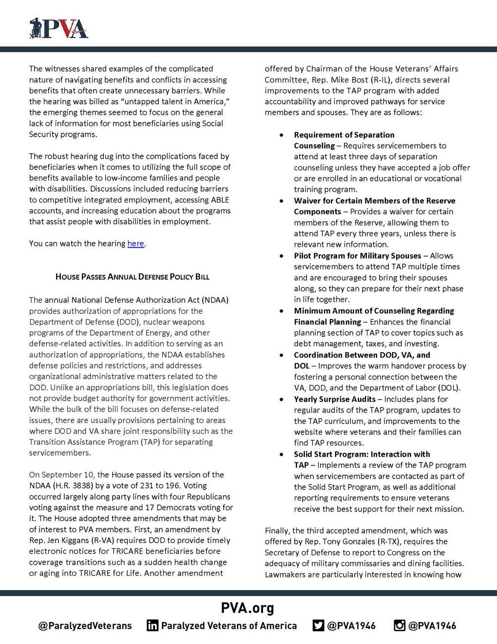 Please visit the House and Senate Veterans' Affairs Committee webpages for information on previousand upcoming hearings and markups.