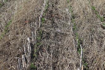 Pictures: Comparison of giant ragweed control in (A) cover crop, (B) no-tillage with burndown herbicide treatment and (C) nontreated check.