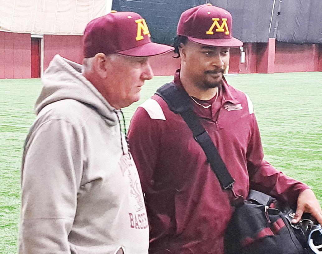 Gopher Coach John Anderson (l) and freshman pitcher-1B