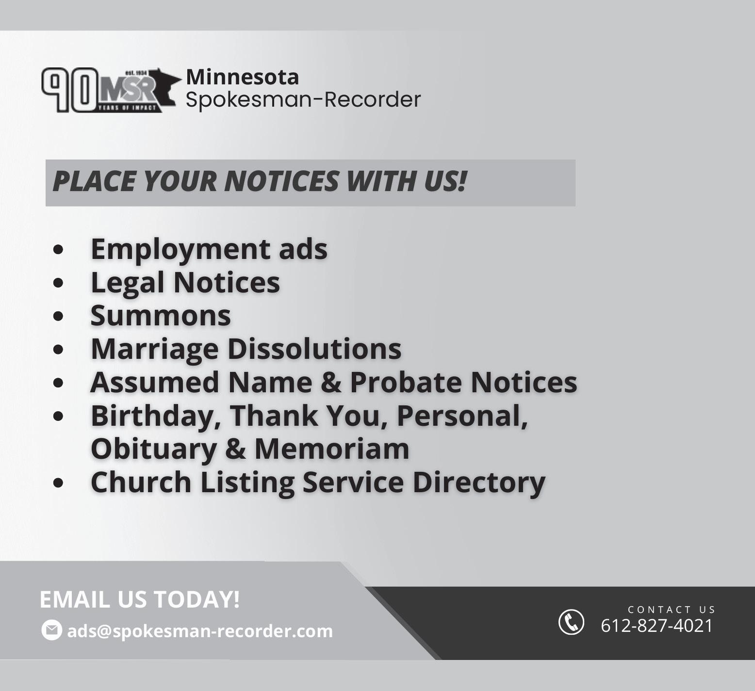 June30, 2025 BY THE COURT: Julia Dayton Klein Judge of District Court Minnesota Spokesman-Recorder July 31 & August 7, 2025