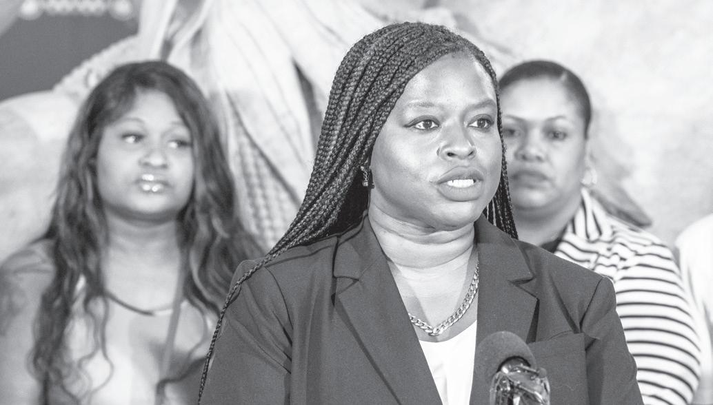 “When I was 16, I was pregnant when police came to my house with a warrant for someone I didn’t know,” she recalled. “They slammed me on the ground, took me to adult jail. I was bleeding and sat there for two days before I saw a doctor.”