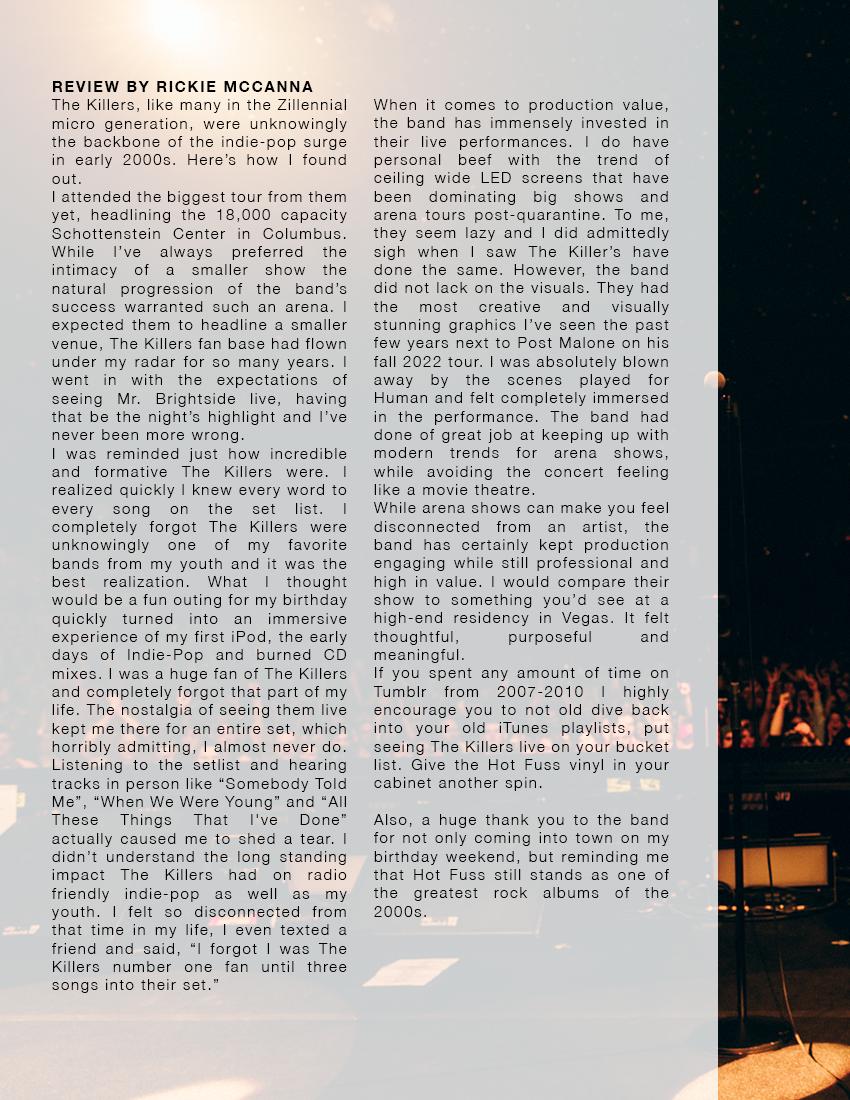 We are back with Volume 49 of MNSTRM! We cover all your spring tours including Greta Van Fleet, The Killers, Dropkick Murphys, The Wonder Years, Grayscale, Half Alive, Mod Sun, and more! This issue has over 150 pages of work from over twelve of our contributors. It’s holding up as our biggest issue of the year for the full comeback of live music in 2023. As always, thank you for supporting local media.