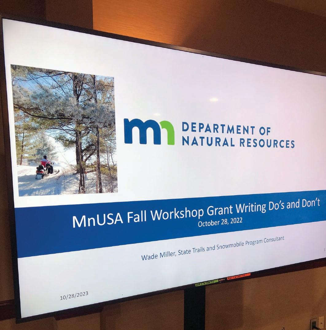 Don’t forget that the MnUSA Fall Workshop is right around the corner, October 24 - 26, hosted by Region 8, to be held at the Minneapolis Marriott West, 9960 Wayzata Blvd., Minneapolis. They have a lot of fun activities planned, including a membership platform training seminar to be held on Saturday from 3-5pm. Club admins should do their best to attend, as you will be able to do your own rosters online as new members join, rather than once a year or however you submitted in the past. By being able to enter new members as they join, they start getting the Minnesota Snowmobiling magazine sooner and the life insurance policy starts then too. Also, this is election month for MnUSA officers. Nominations were held at the summer event, and we vote in October.