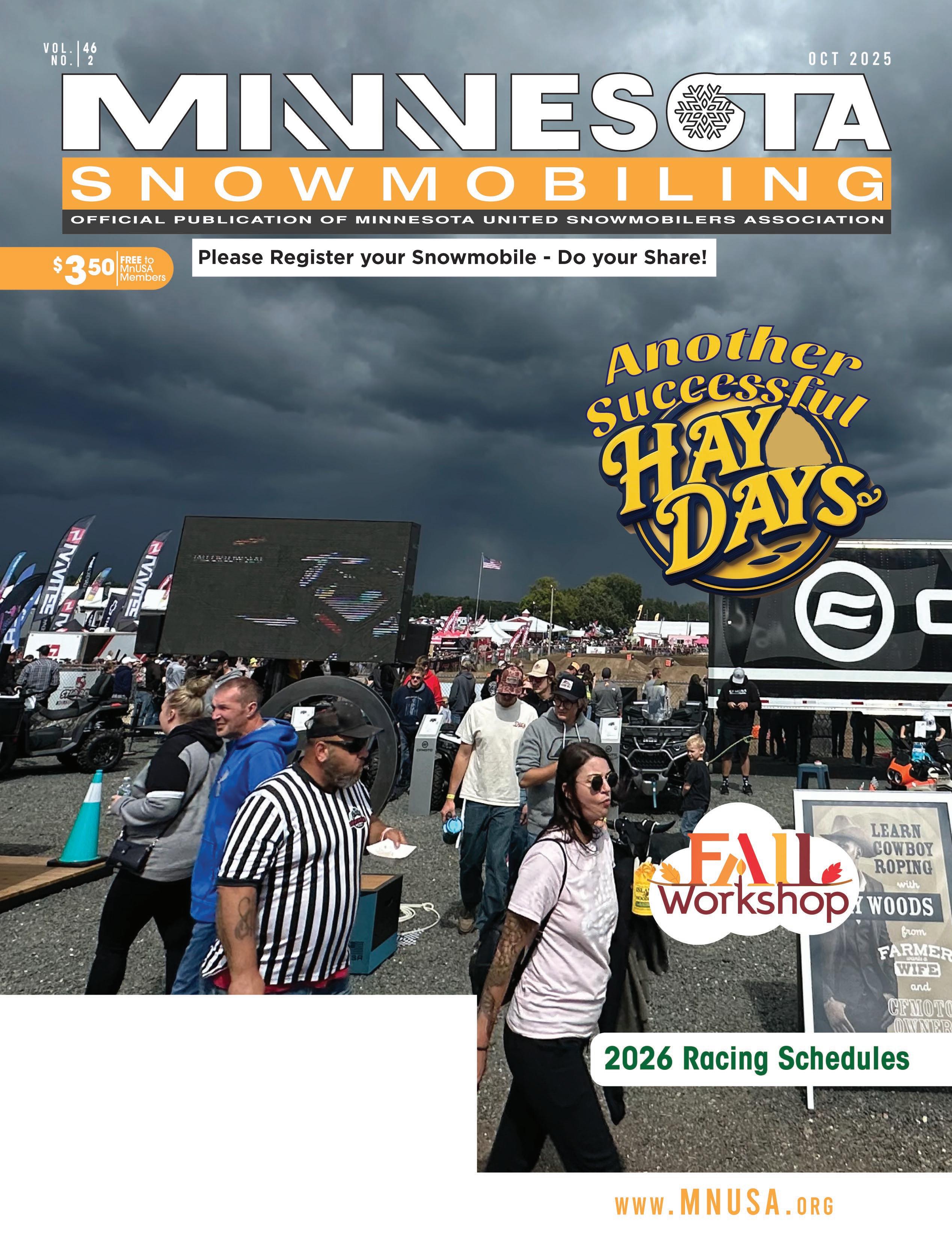 Minnesota Snowmobiling is the official publication of the Minnesota United Snowmobilers Association (MnUSA). The publication is a benefit of membership in MnUSA ($35 annual membership).