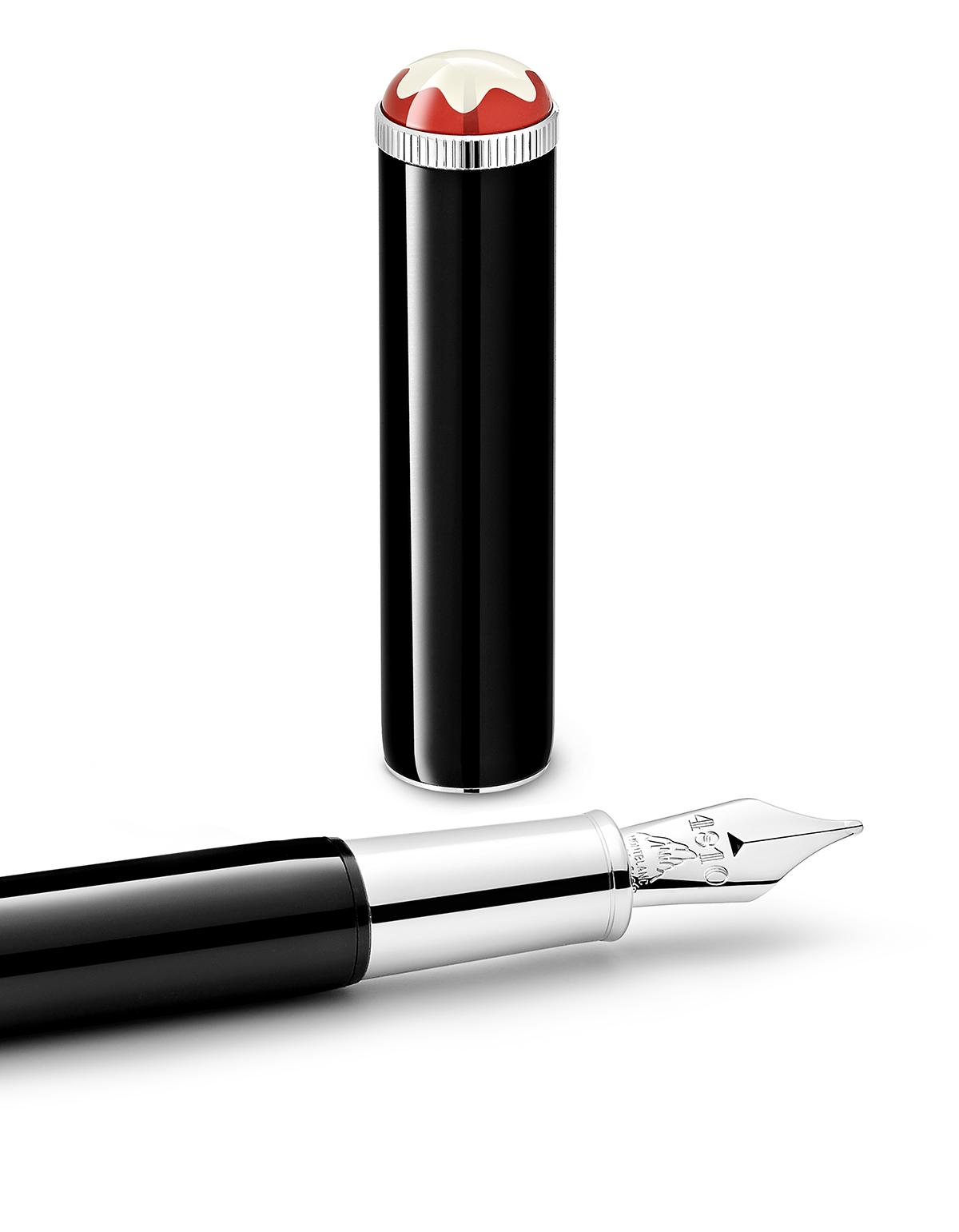 QUOI ? Le « Baby Spécial Édition » de la collection MONTBLANC Heritage qui revisite les célèbres « Baby Pens » (mini-stylos) des années 1910 et 1920, les plus petits instruments d'écriture de l’époque. Il mesure 10 cm de longueur, avec le dôme du capuchon qui rappelle celui des premiers instruments d'écriture MONTBLANC Rouge et Noir. Dans cette nouvelle version, il est couronné d’un emblème couleur ivoire serti d’une résine précieuse rouge. Cette collection se décline en laque noire avec des attributs platinés, et en laque ivoire avec des attributs dorés.