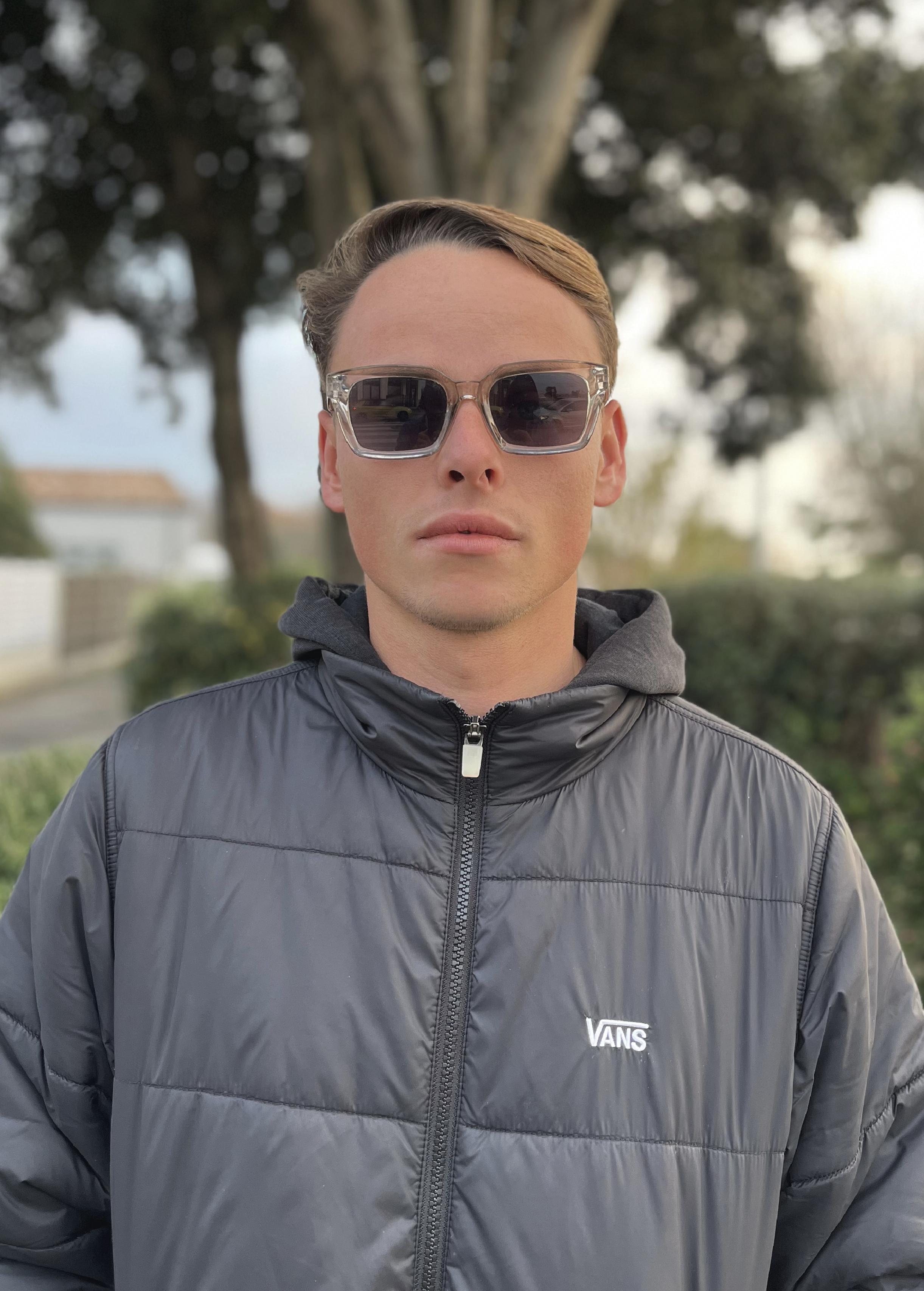 Tom est adepte du casual street et soucieux de son image, il porte une paire de lunettes de soleil (le modèle Aalto) de la marque italienne SUPER by RETROSUPERFUTURE qui, depuis 2007, séduit les branchés du monde entier : « J’ai craqué pour cette monture pour son design angulaire et pour la matière cristal dont la transparence donne l’impression que les verres flottent ».