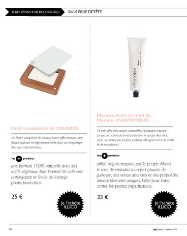 Masque Aura au miel de Manuka d’ANTIPODES Fard à paupières de COLORISI Ce fard à paupières de couleur nacre offre texture ultra douce, soyeuse et légèrement irisée pour un maquillage des yeux très lumineux. les