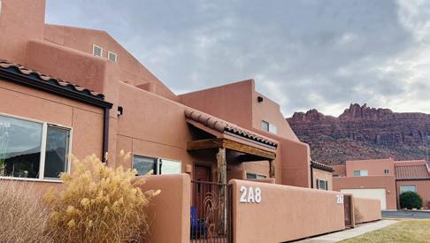 Open living concept, vaulted ceilings and abundant natural light, plus a short distance to downtown Moab, make this a convenient and carefree place to call home. A sliding glass door to the back patio and grassy common space leads to a tranquil and maintenance-free yard. The master bedroom with private ensuite full bath and walk-in cedar-lined closet, guest bedroom with adjacent three-quarter bath, private front courtyard patio, and spacious two-car garage combine to create a comfortable, modern living space with room to spare.