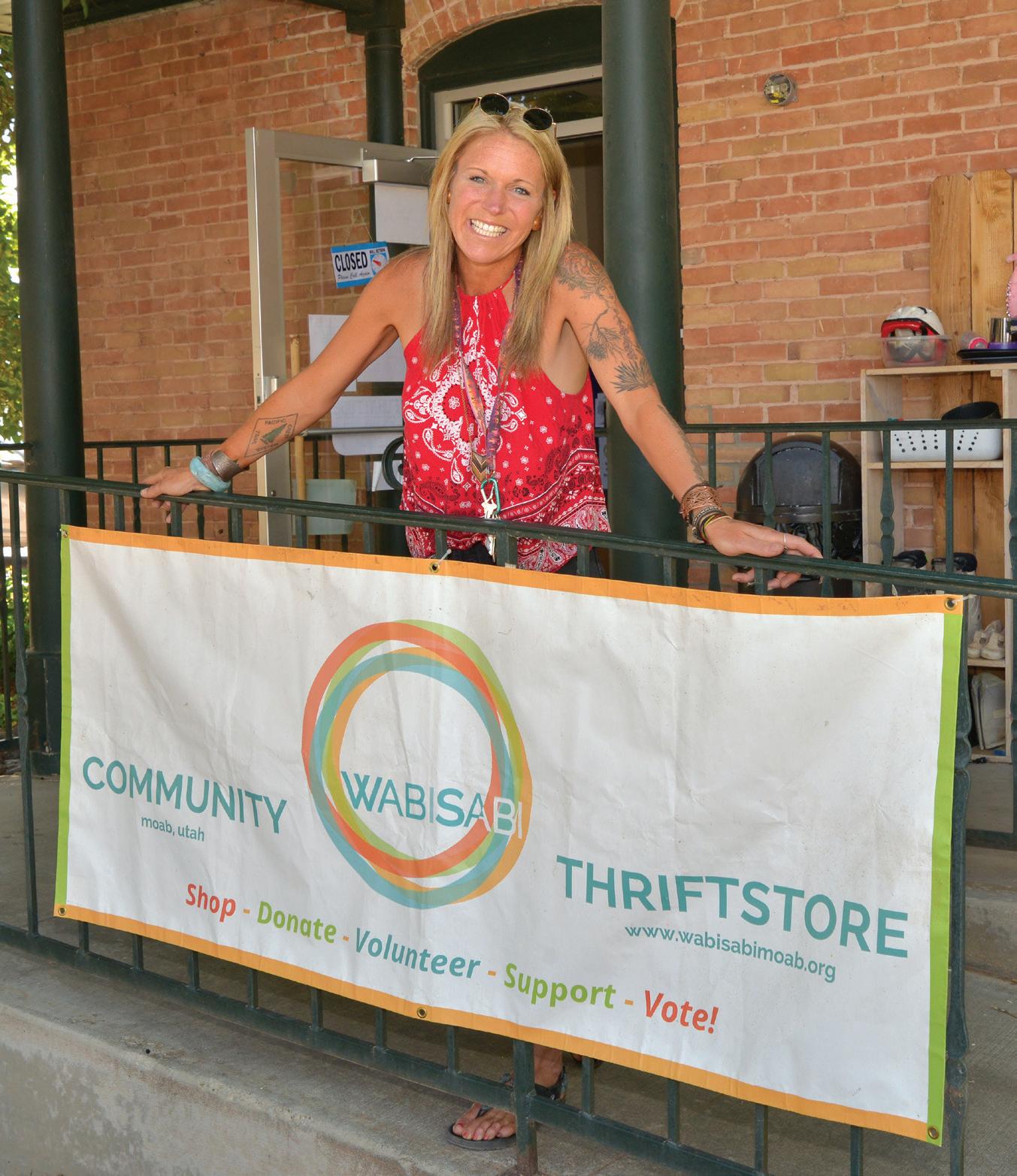 Above: Executive Director Leah Bear in front of Wabi Sabi’s new location at 198 E. Center Street in Moab. [Photo by Murice D. Miller]