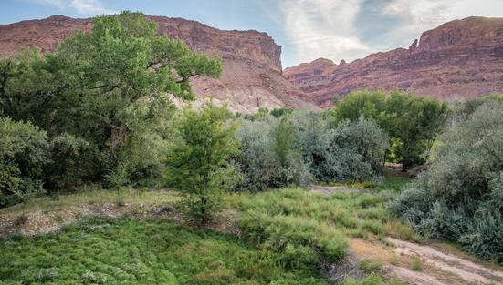 front cover: A cyclist rides past a section of the “Community Mural,” a work by artist Grayce Wylder and commissioned by Moab Arts. The colorful mural fills a long wall on the creek pathway beneath the Main Street bridge in Moab and was painted in a “paint-by-numbers”