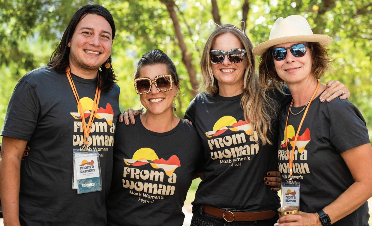 Bottom: At the first annual From a Woman: Moab Women’s Festival, Audrey Graham accepts the “TrailblazHER” award from event co-founder Teresa Herd. [Photo by Rachel Fixsen]