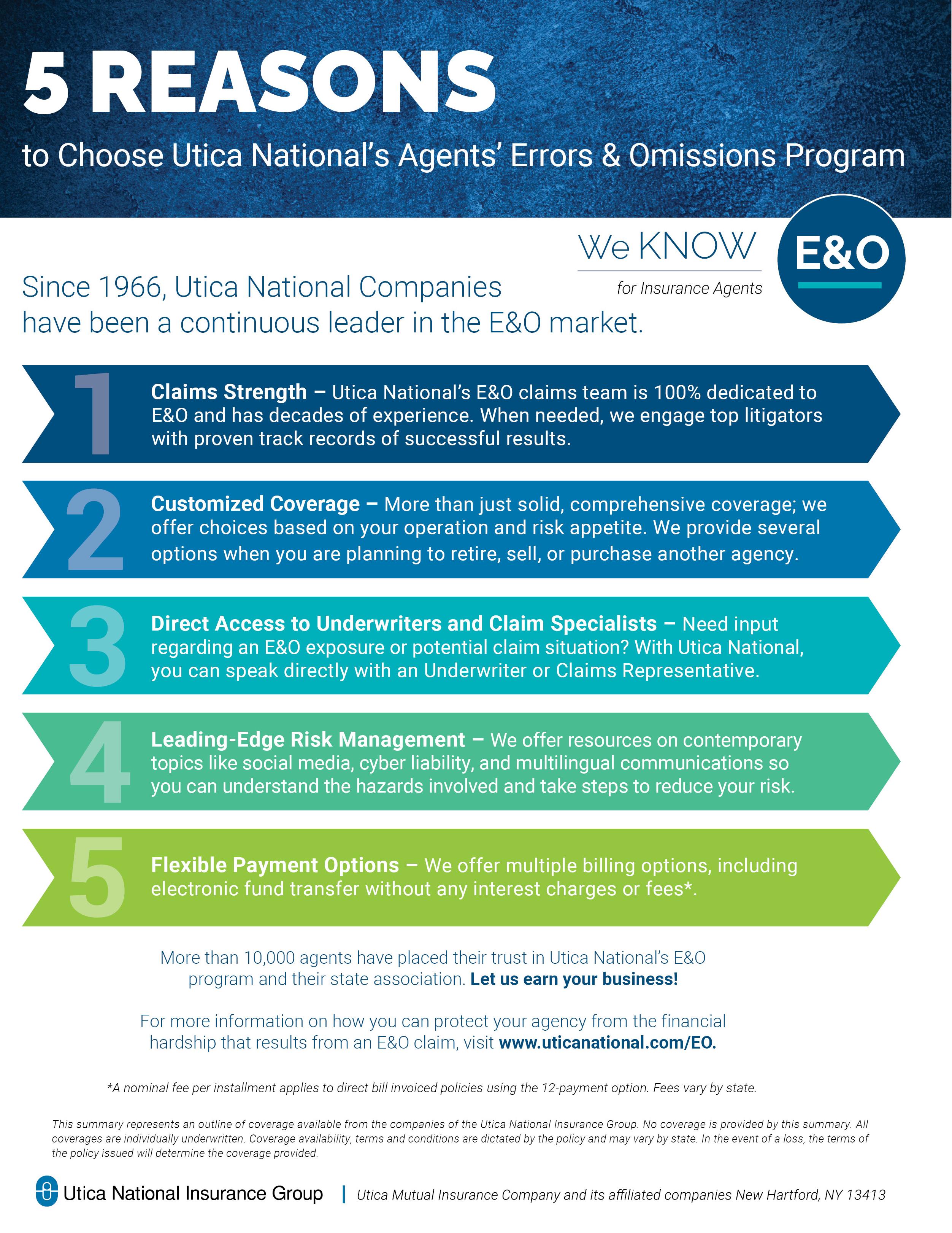 roper placement of the agency's errors & omissions (E&O) coverage is of utmost importance. Protection provided by an E&O policy can be the difference between the agency's continued success and financial ruin.
